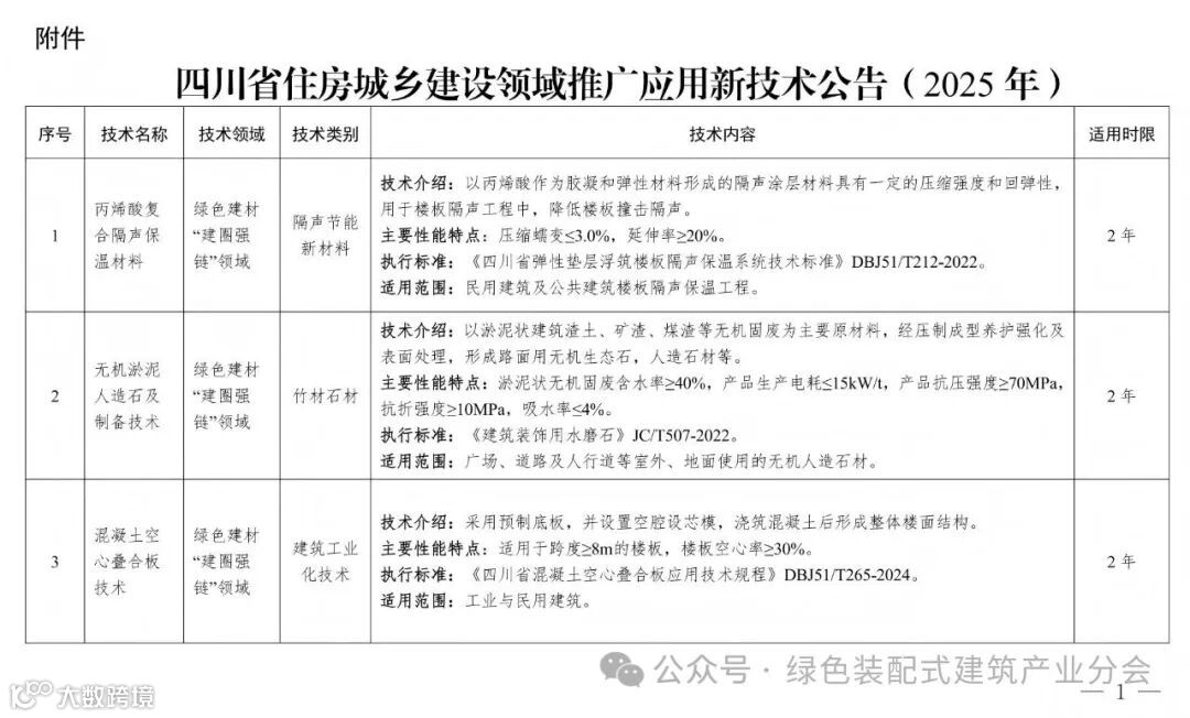 导读│识别文末二维码下载《四川省住房城乡建设领域推广应用新技术公告(2025年)》全文。详情如下↓