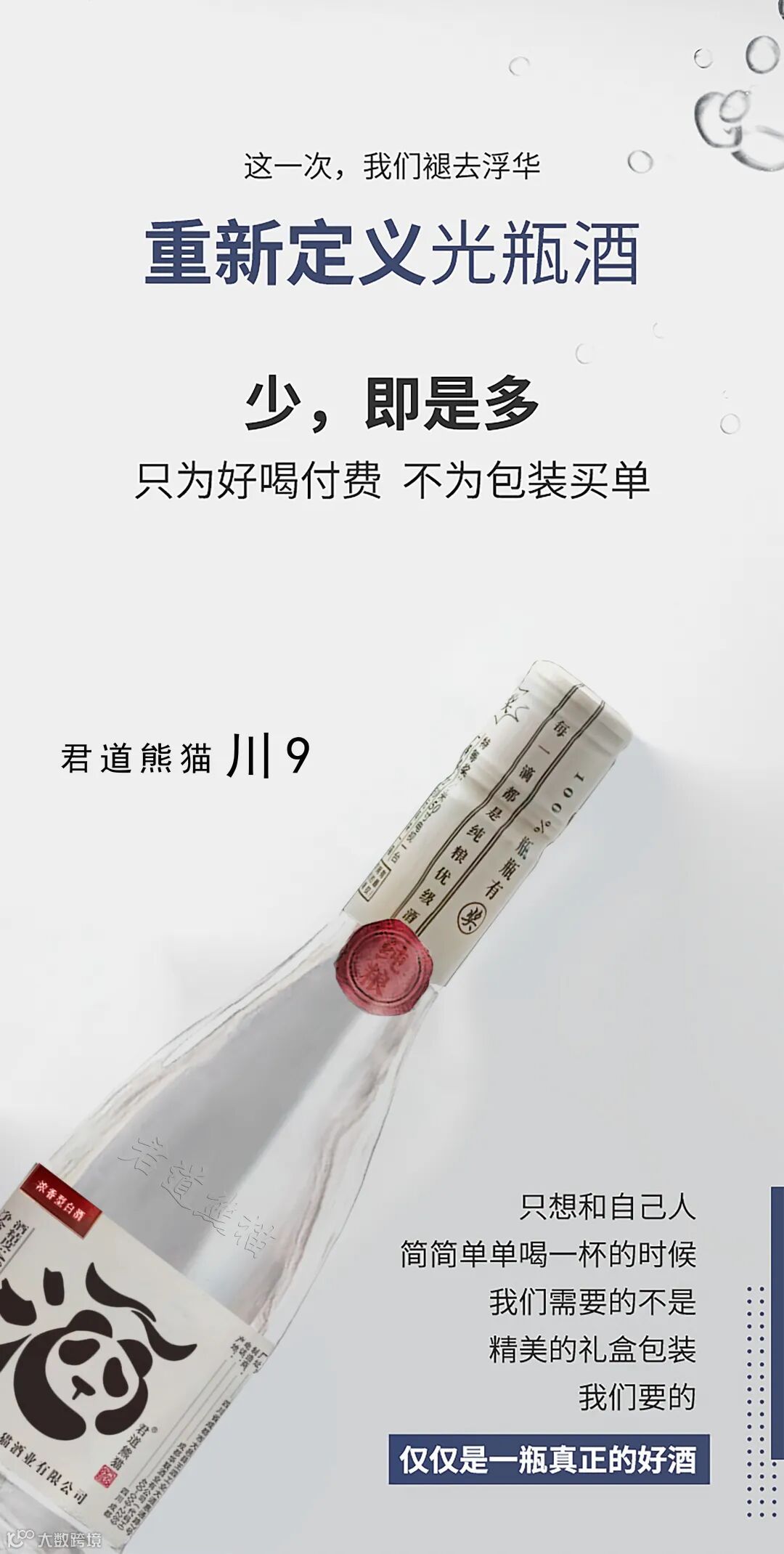 摘下华丽的包装,君道熊猫酒以最本真的面貌面对消费者。这种“光瓶”理念,是对过度包装的反思,是对酒质本身的专注,更是对消费者的真诚——让每一分钱都花在品质上,而不是包装上。