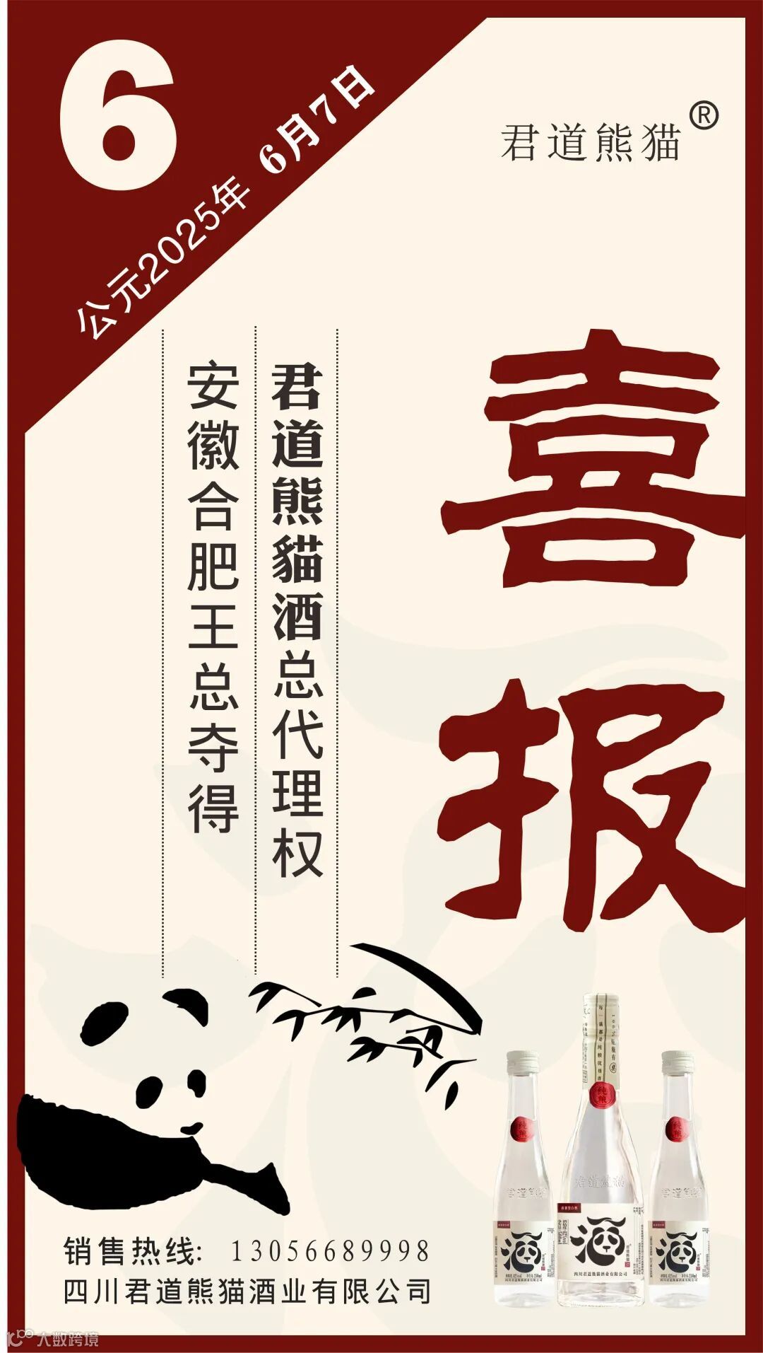 热烈祝贺安徽合肥王总、安徽宿州雷总成功夺得君道熊猫酒总代理权!