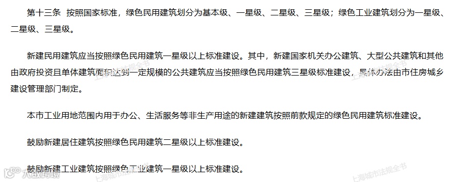 Tips:《上海市绿色建筑条例》第十三条明确: