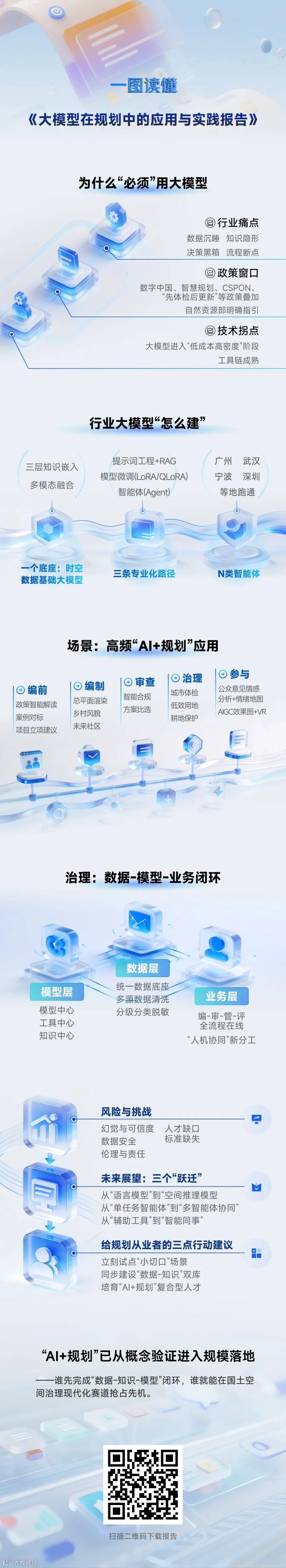 由中国城市规划学会城市规划新技术应用专业委员会(挂靠在广州市规划和自然资源局下属的广州市基础地理信息中心)组织编纂的《大模型在规划中的应用与实践报告》正式面向全行业发布。针对当前规划领域在大模型应用过程中普遍存在的认知分散、路径模糊与实践参考不足等挑战,报告系统梳理了行业前沿探索与落地成果,致力于为从业者提供一份聚焦实施路径的务实指引。