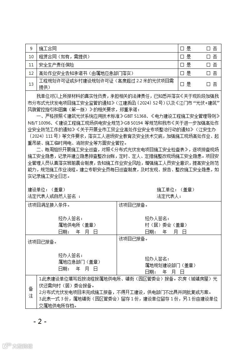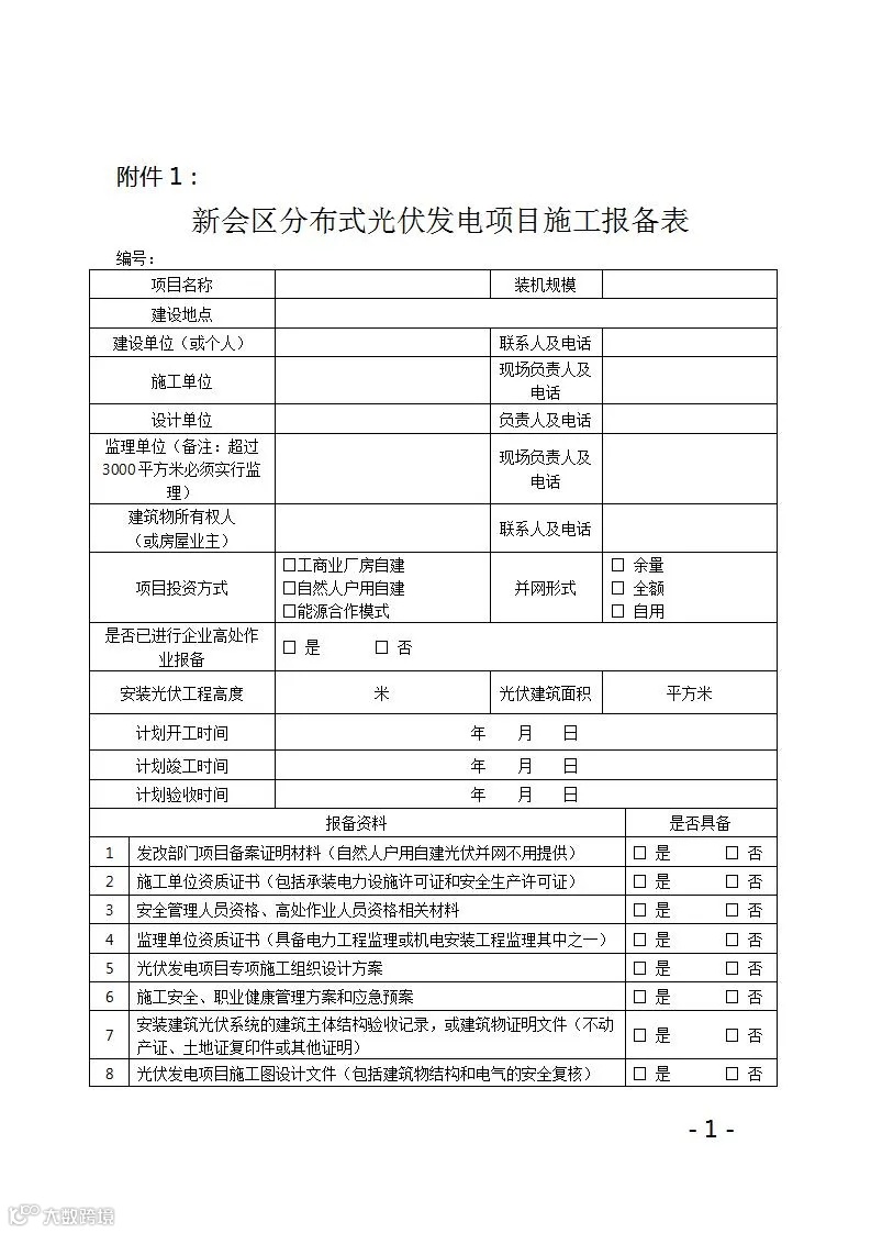 附件: 1.新会区分布式光伏发电项目施工报备表