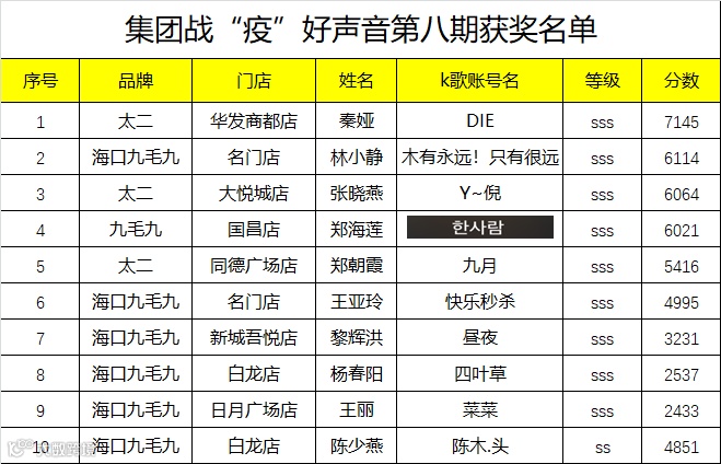 导读:获奖的伙伴,在九毛九集团k歌王3群留电话了吗?