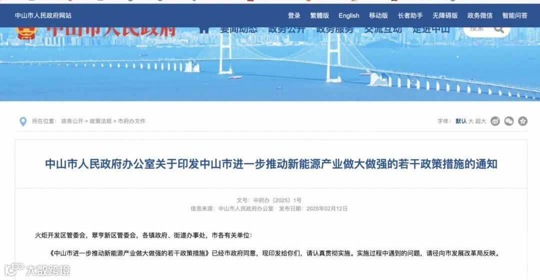 中山市进一步推动新能源产业做大做强的若干政策措施