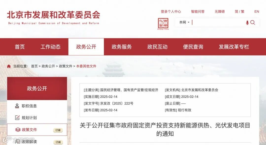关于公开征集市政府固定资产投资支持新能源供热、光伏发电项目的通知