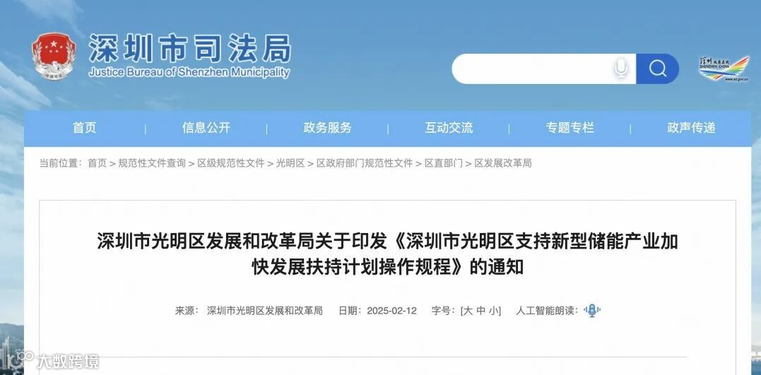 深圳市光明区支持新型储能产业加快发展扶持计划操作规程