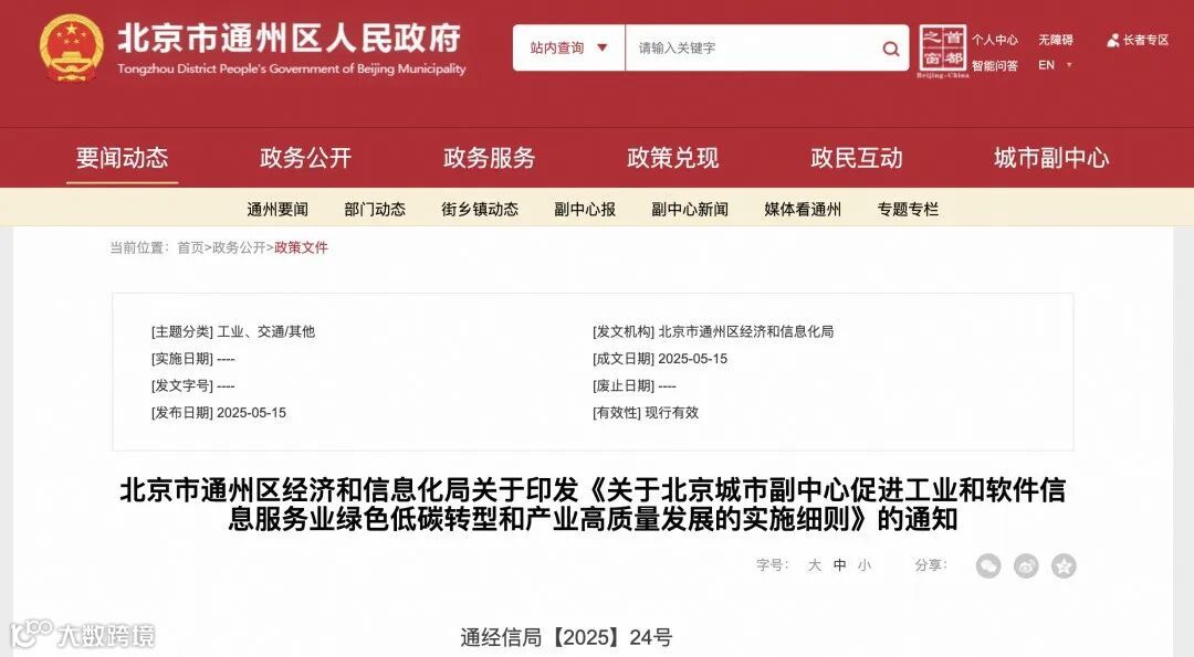 关于北京城市副中心促进工业和软件信息服务业绿色低碳转型和产业高质量