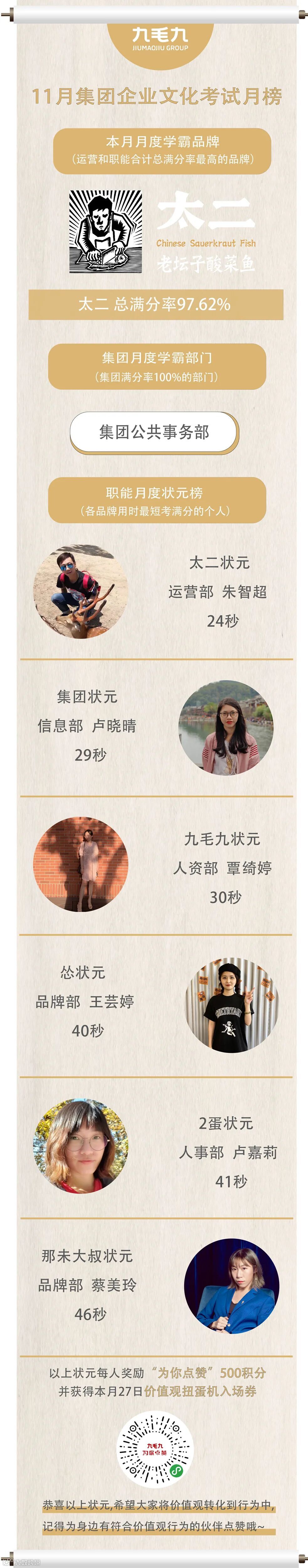 11月集团企业文化考试月榜