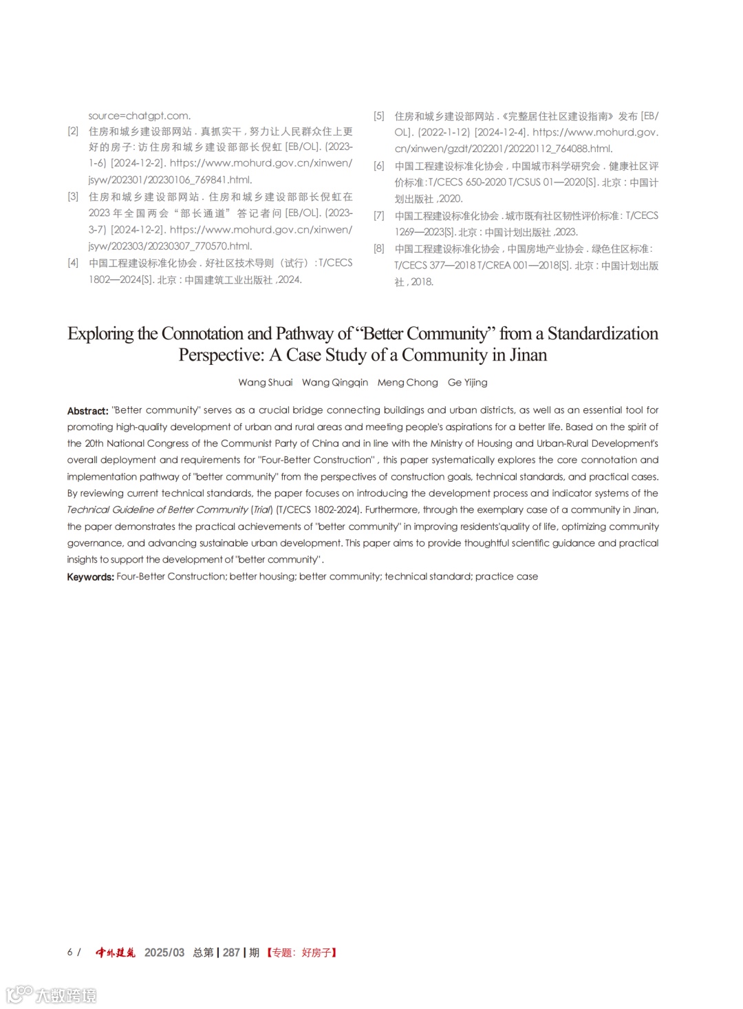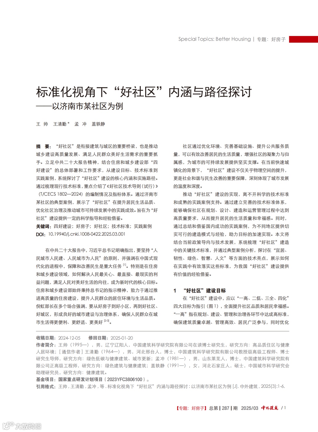 [1]王帅,王清勤,孟冲,等.标准化视角下“好社区”内涵与路径探讨:以济南市某社区为例[J].中外建筑,2025(3):1-6.