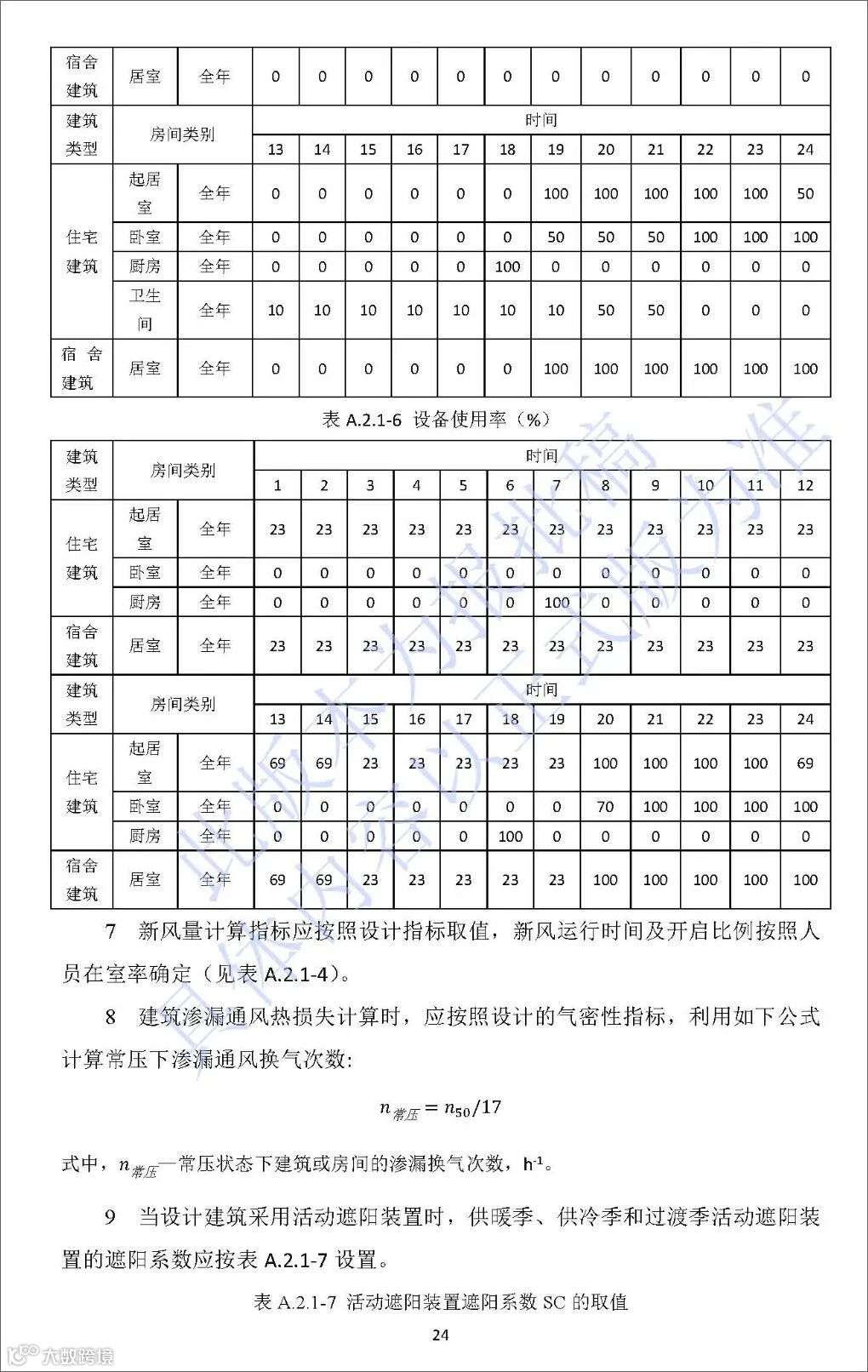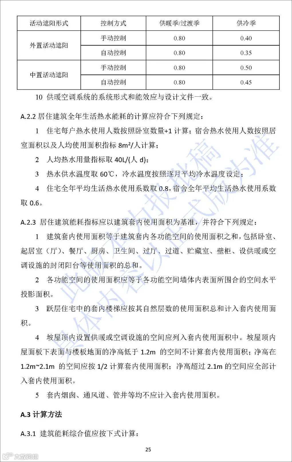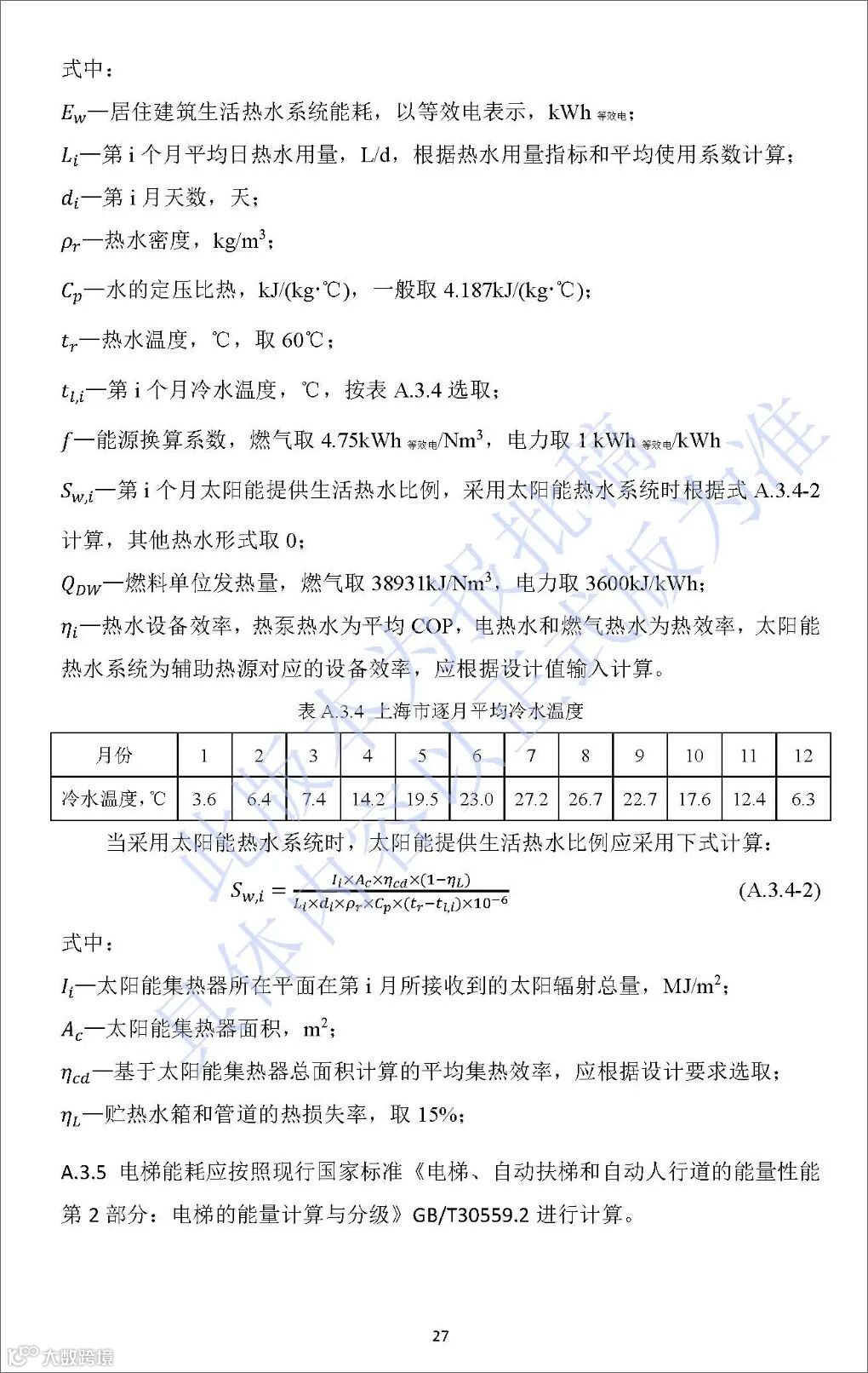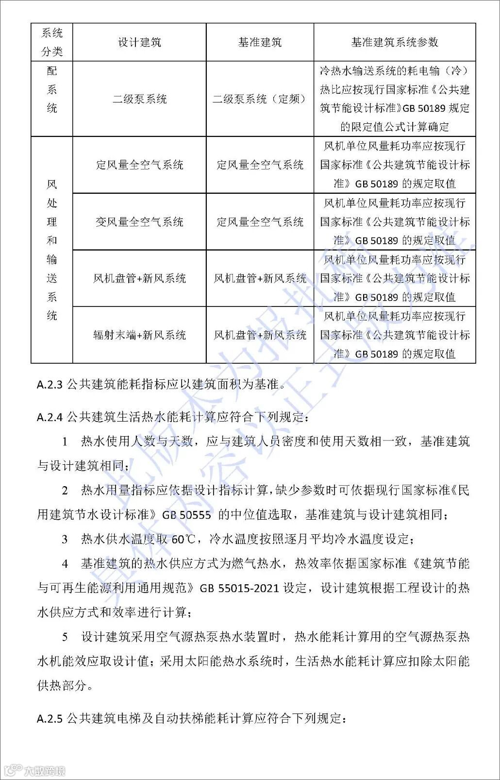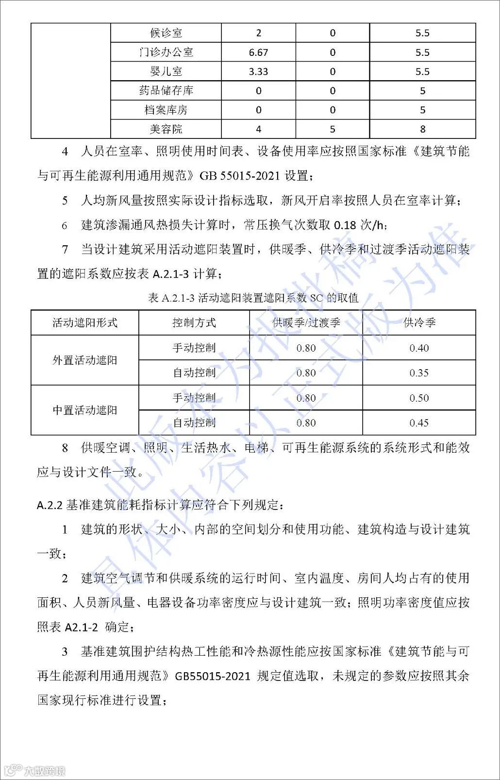 7、完善能耗计算方法。提出了空调系统间歇模式和连续模式的时间表选用规定;区分了中置可调遮阳和外置可调遮阳的计算参数;调整公共建筑基准建筑窗墙比参数;引入逐月冷水温度参数,完善生活热水能耗计算方法;引入了电梯能效等级特征参数,完善了电梯能效计算方法。
