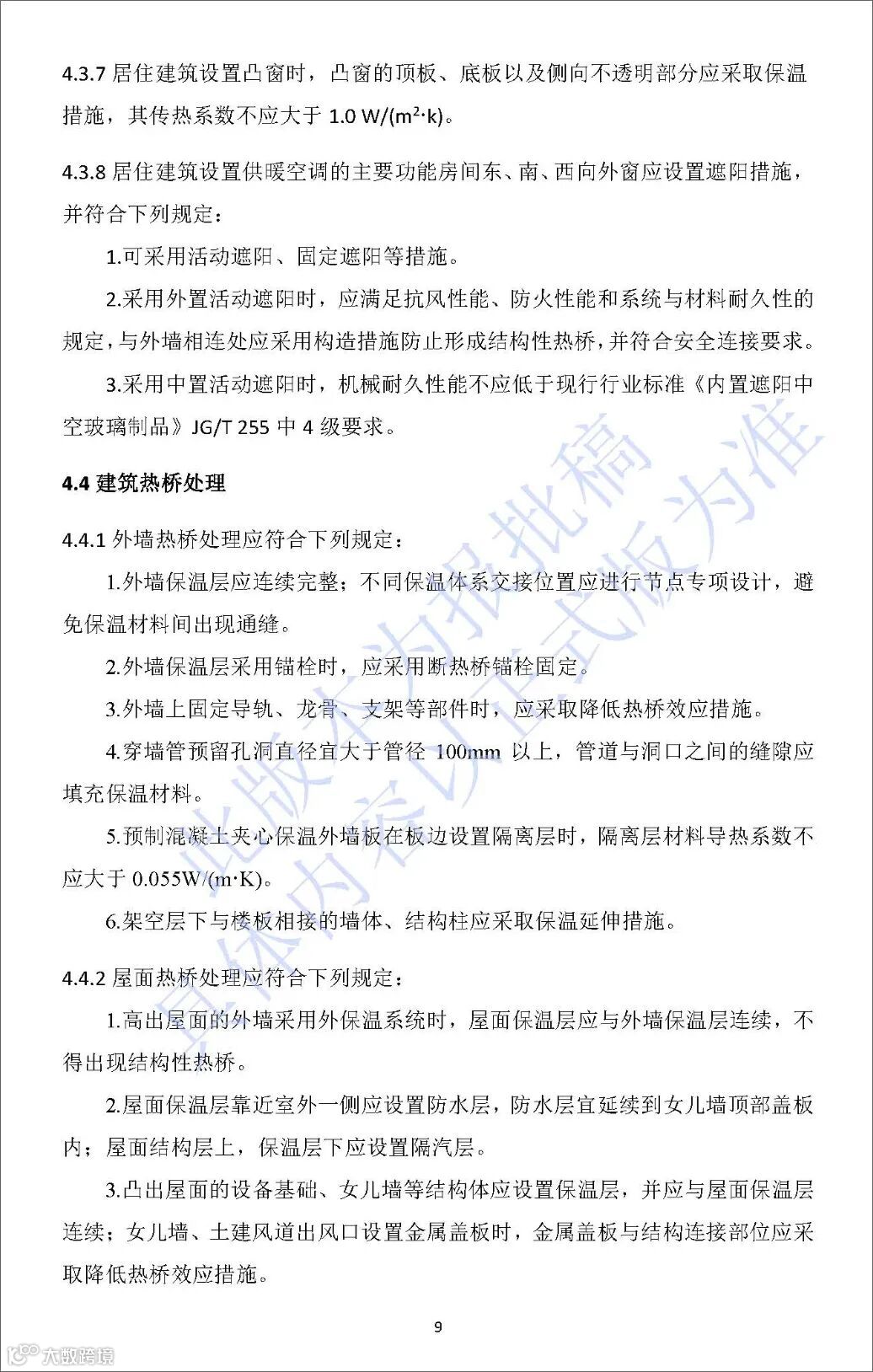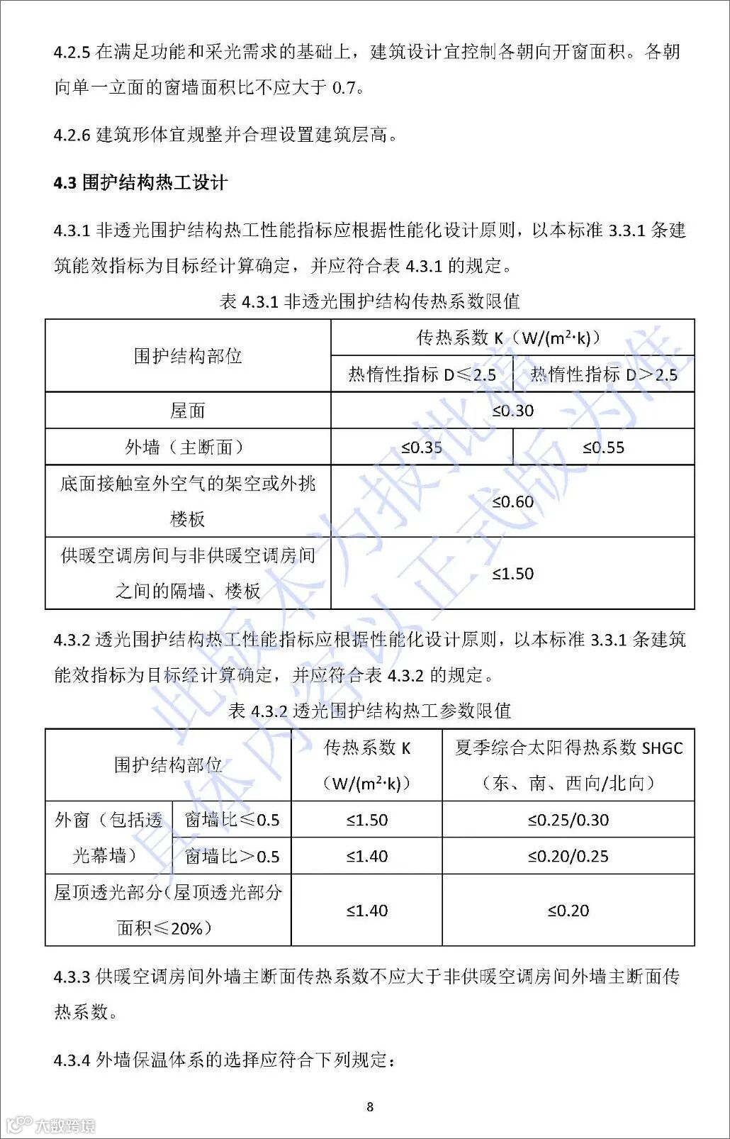 3、制定适度围护结构热工指标。根据建筑负荷特性差异,制定了差异化的围护结构热工指标要求;引入外墙主断面传热系数,简化核心指标的判定方式;居住建筑进一步提高了高性能外窗的应用技术要求。