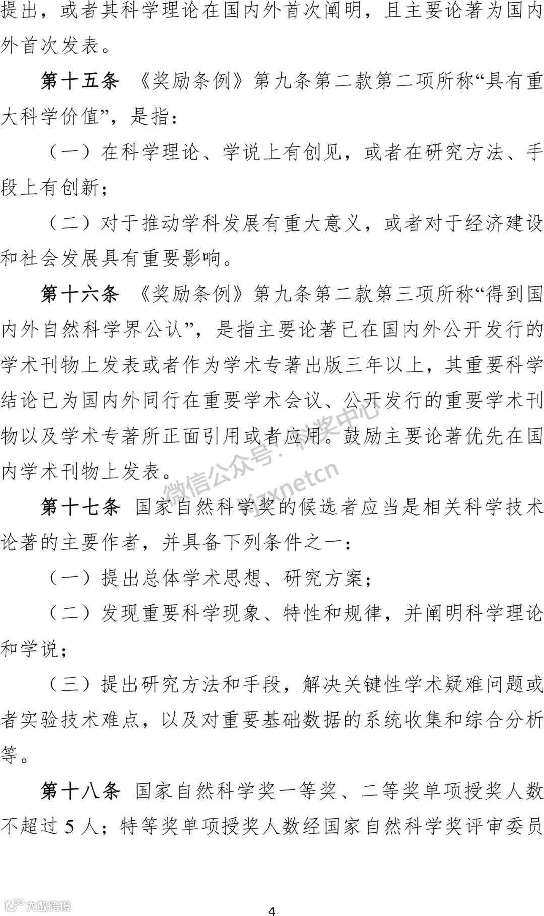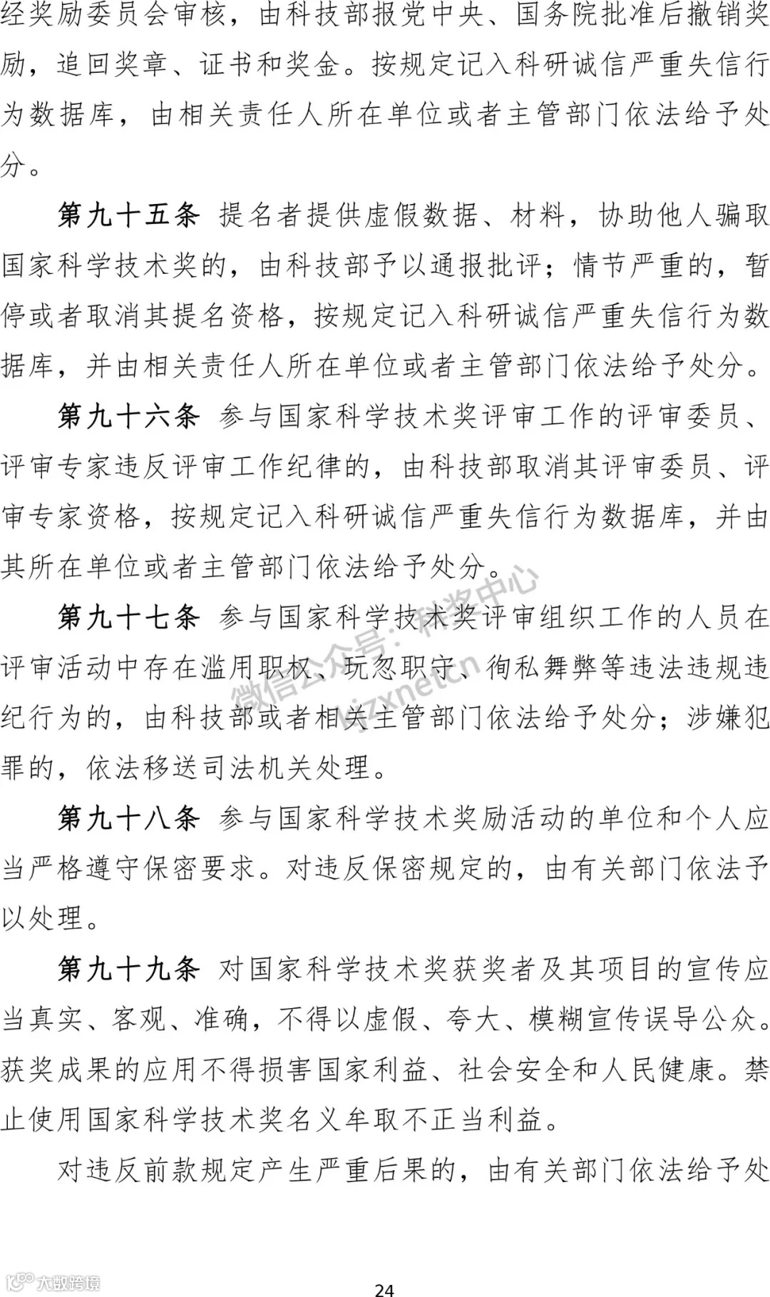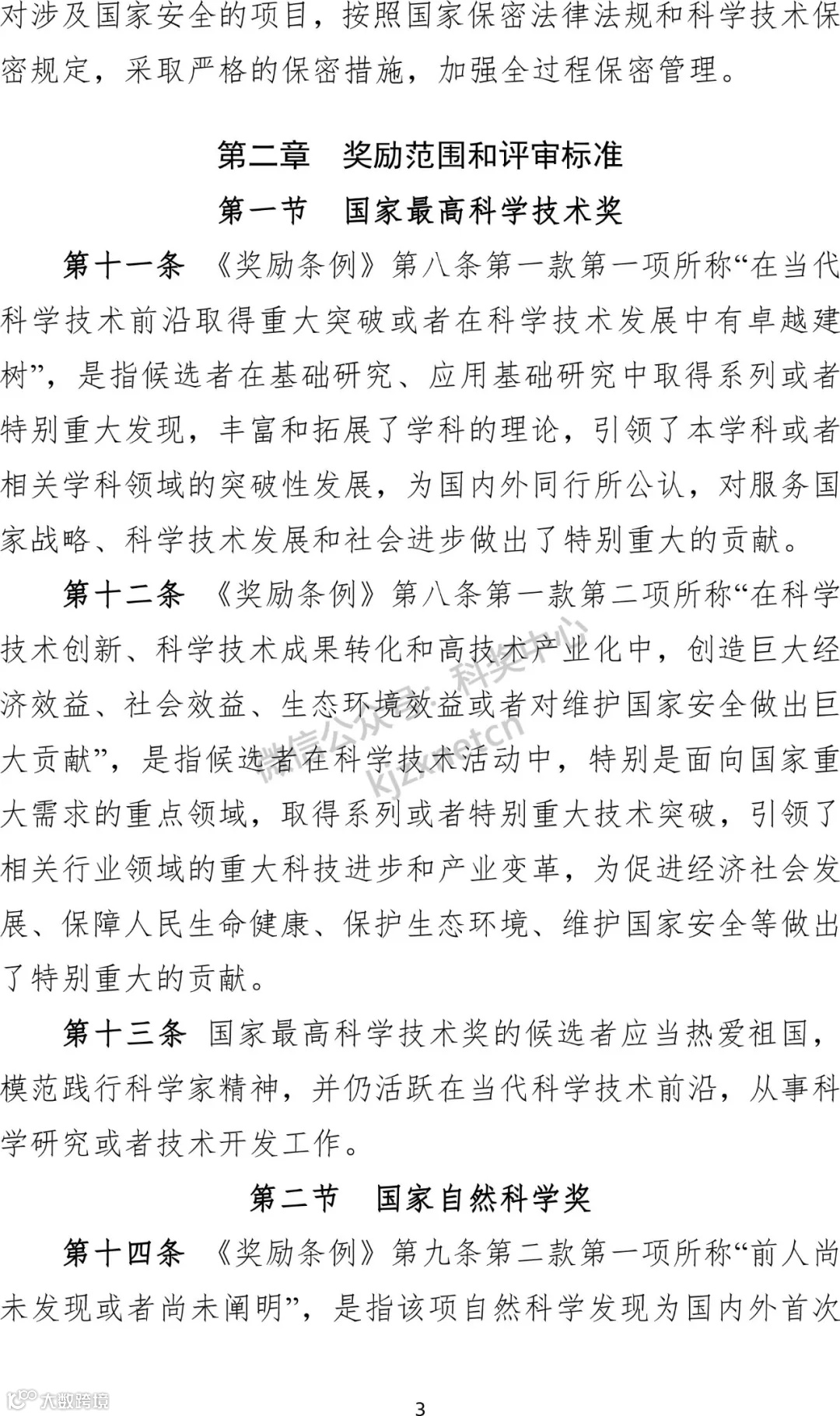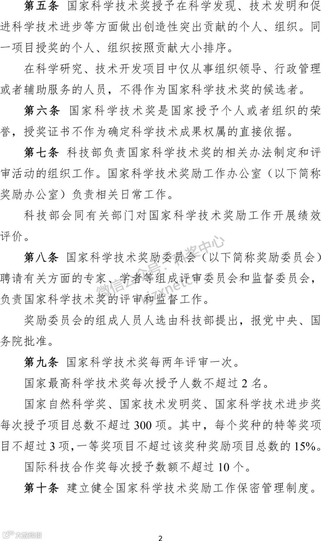 3、明确评奖周期和授奖数量。规定国家科学技术奖每两年评审一次,国家自然科学奖、国家技术发明奖、国家科学技术进步奖每次授予项目总数不超过300项。