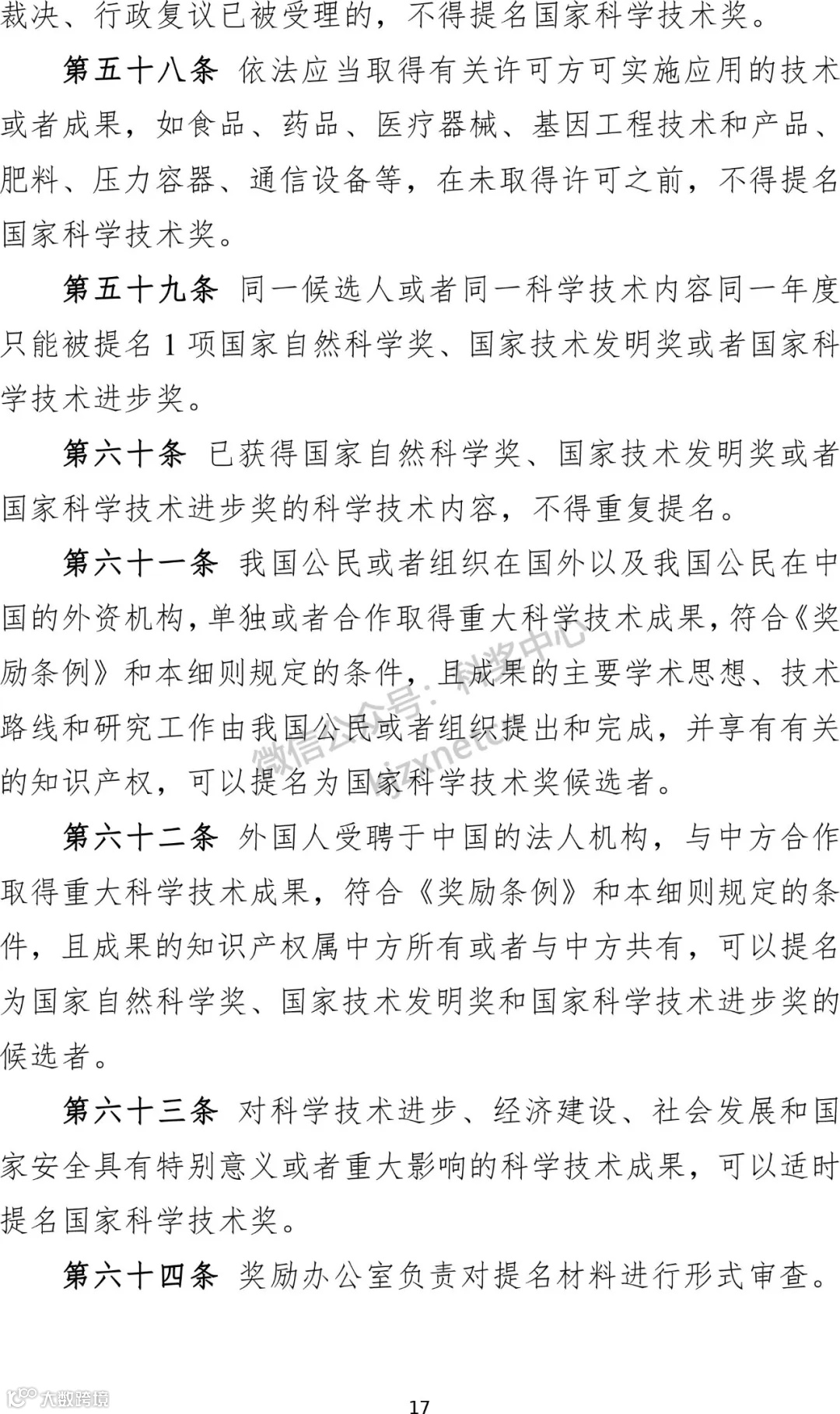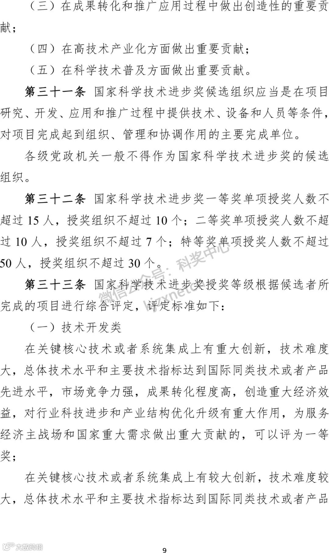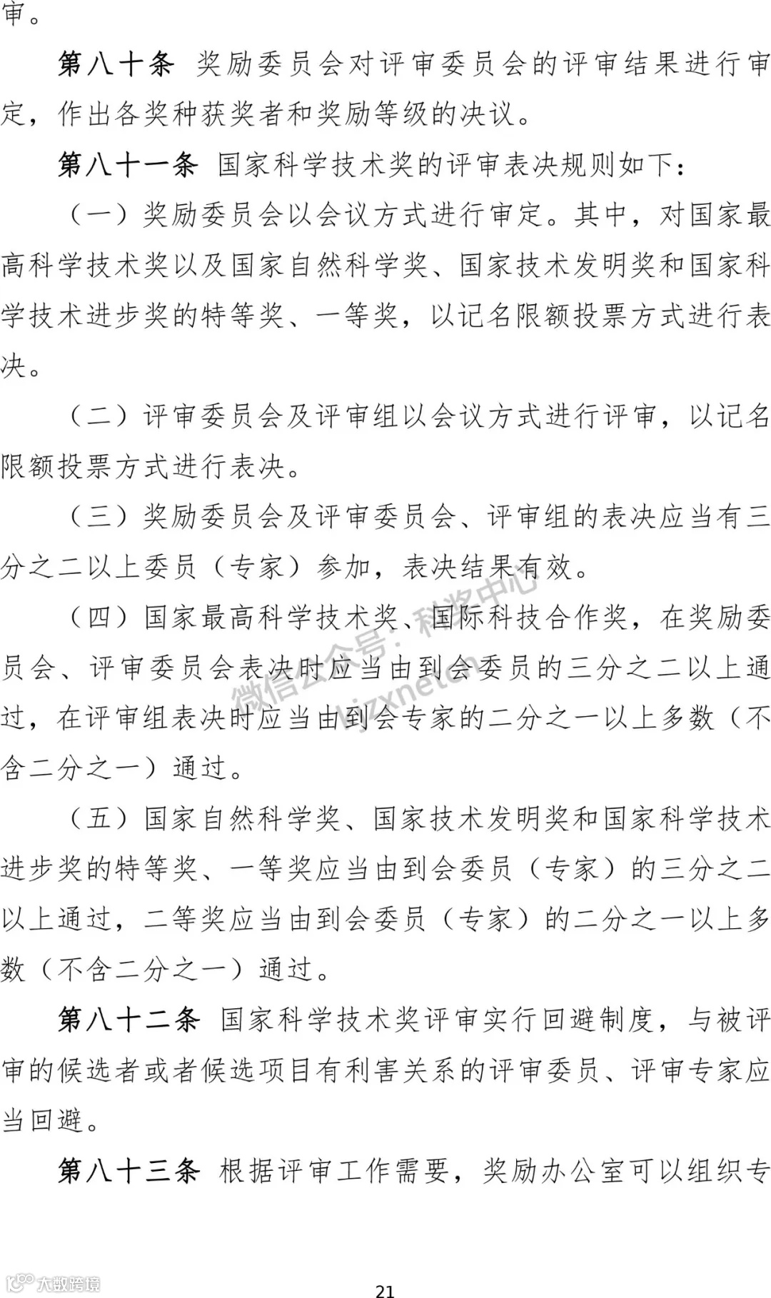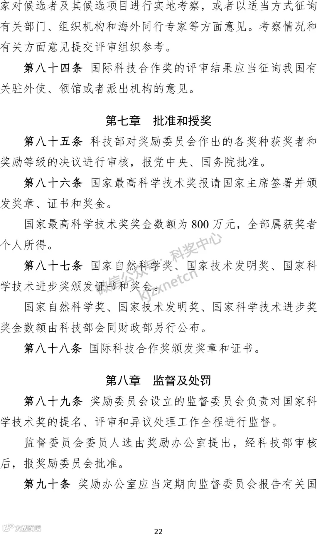3、明确评奖周期和授奖数量。规定国家科学技术奖每两年评审一次,国家自然科学奖、国家技术发明奖、国家科学技术进步奖每次授予项目总数不超过300项。