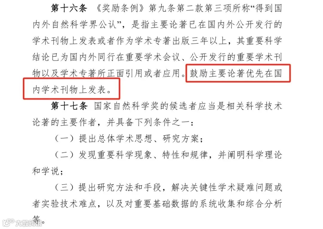 此次,首次将“鼓励主要论著优先在国内学术刊物上发表”写入《国家科学技术奖励条例实施细则(修订草案征求意见稿)》。