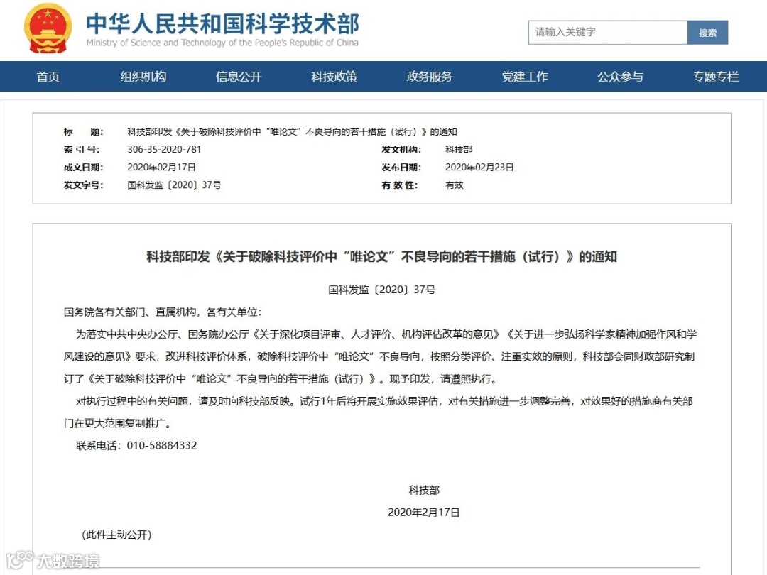 2020年2月23日, 科技部正式印发《关于破除科技评价中“唯论文”不良导向的若干措施(试行)》通知,措施共计9大方面27条。明确要求破除“唯论文”论不良导向,打造中国高质量科技期刊。