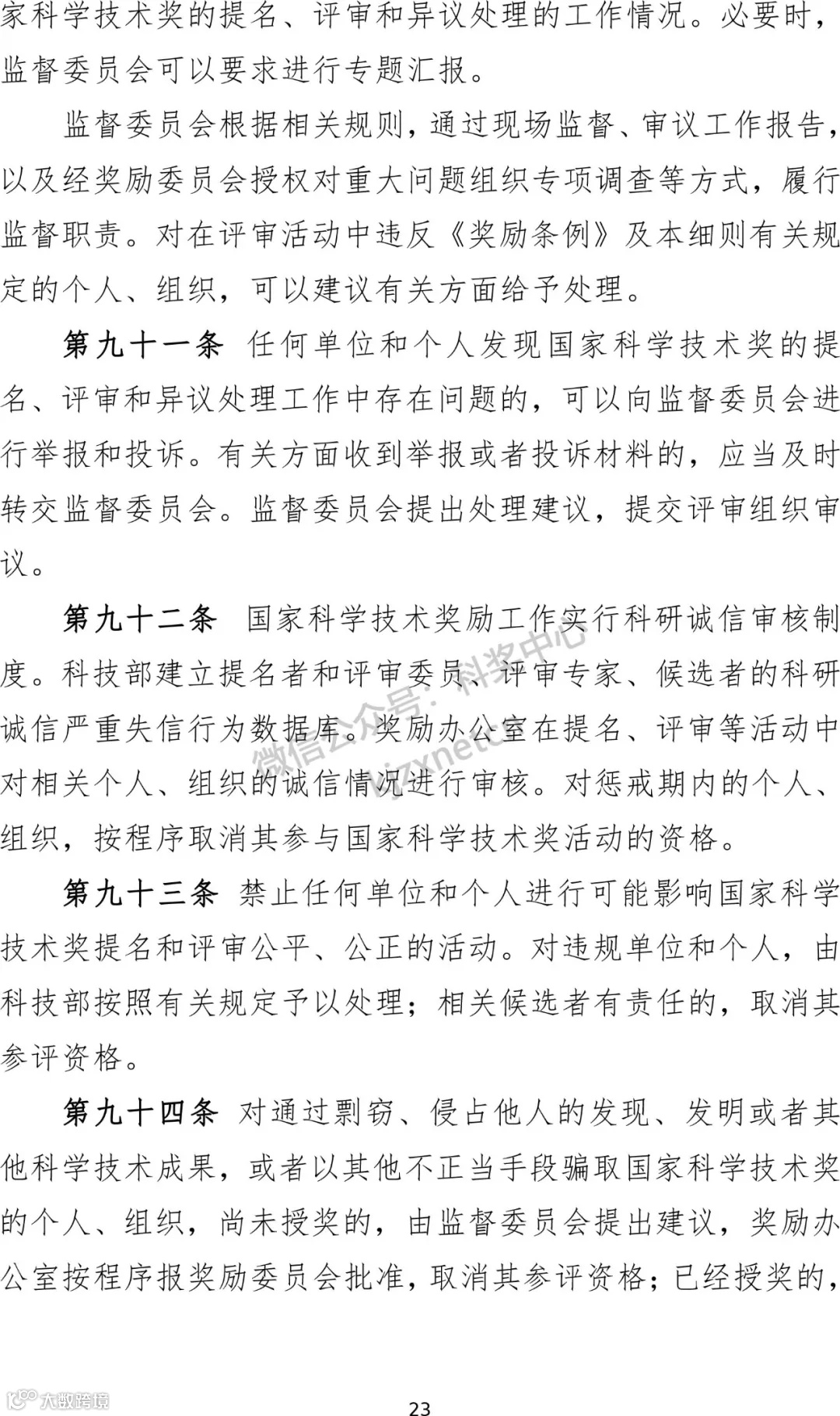 5、强化诚信监督。一是明确监督委员会履职方式。二是实行科研诚信审核机制。三是禁止任何单位和个人进行可能影响国家科学技术奖提名和评审公平、公正的活动。四是细化对国家科学技术奖励活动中各类主体违规行为的惩戒措施。