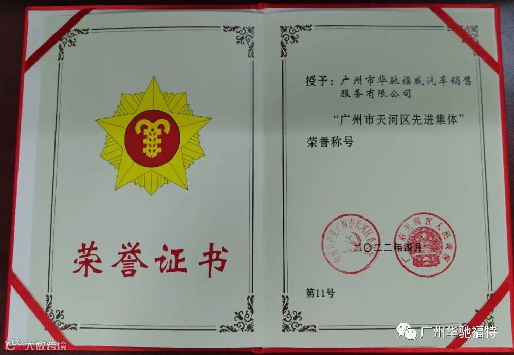 荣获2021年度广州天河区先进集体奖
