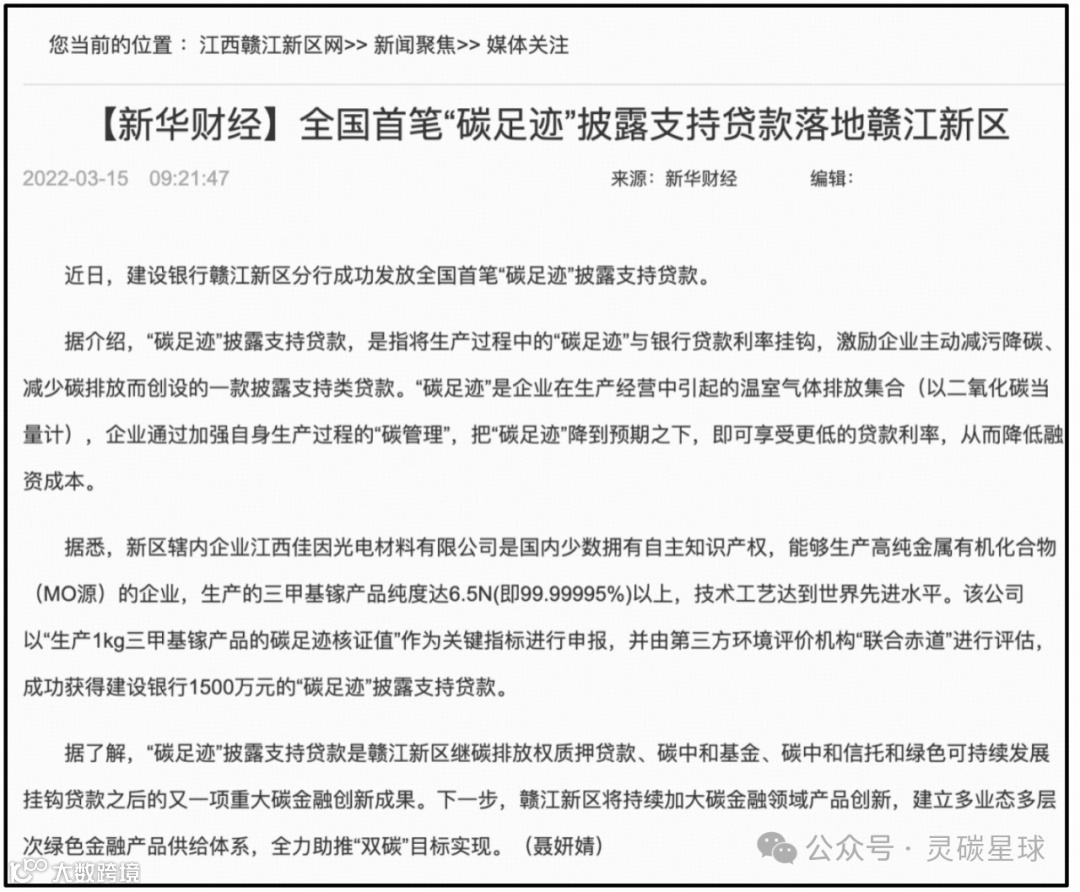 江西赣江新区网:全国首笔“碳足迹”披露支持贷款落地赣江新区
