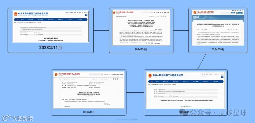 2024年11月,工业和信息化部印发了《重点工业产品碳足迹核算规则标准编制指南》