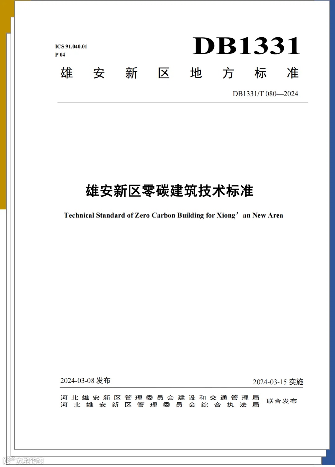 为顺应河北省建筑节能发展趋势,进一步相应国家“双碳”战略,近日,雄安新区发布实施《雄安新区零碳建筑技术标准》(以下简称《技术标准》)。(DB1331/T 080-2024)正式发布,该标准自2024年3月8日起实施。