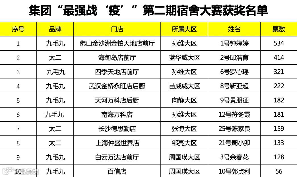 票数前十就能获奖
