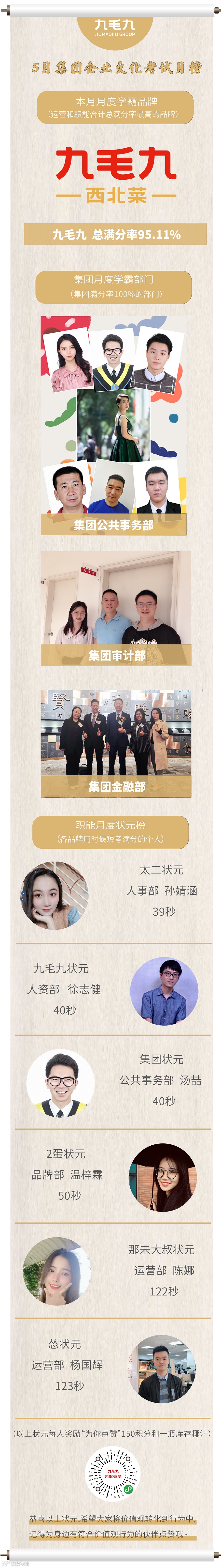 一个有趣的文化号,传播九毛九集团年轻有趣的企业文化~