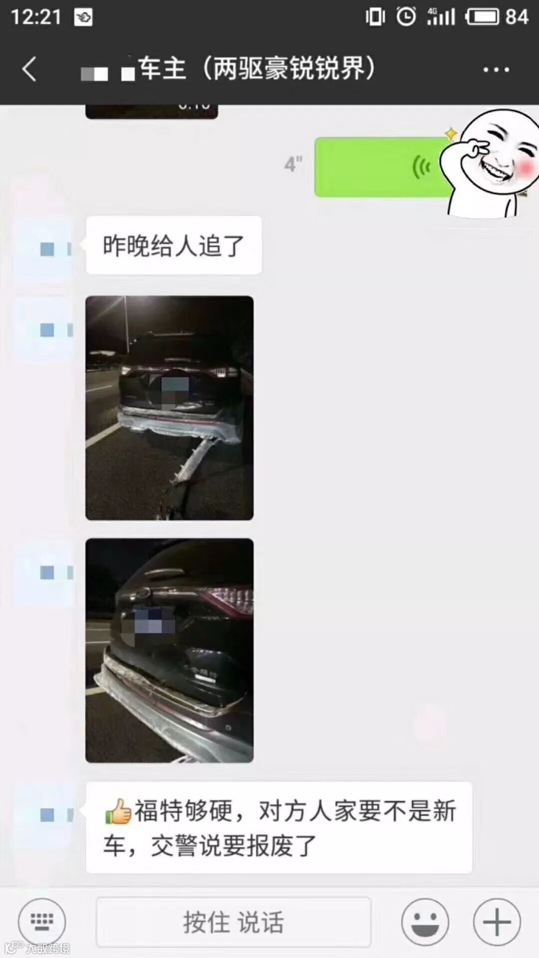 一组追尾事故照片在福特车友群疯传。