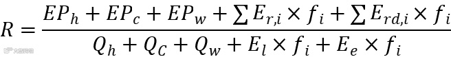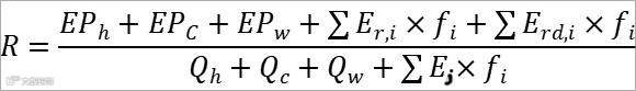 对于生活热水:以年为周期,计算可再生能源对于生活热水的加热量(不含辅助加热)与所消耗生活热水的总耗热量之比。空气源热泵提供生活热水也算可再生能源利用。