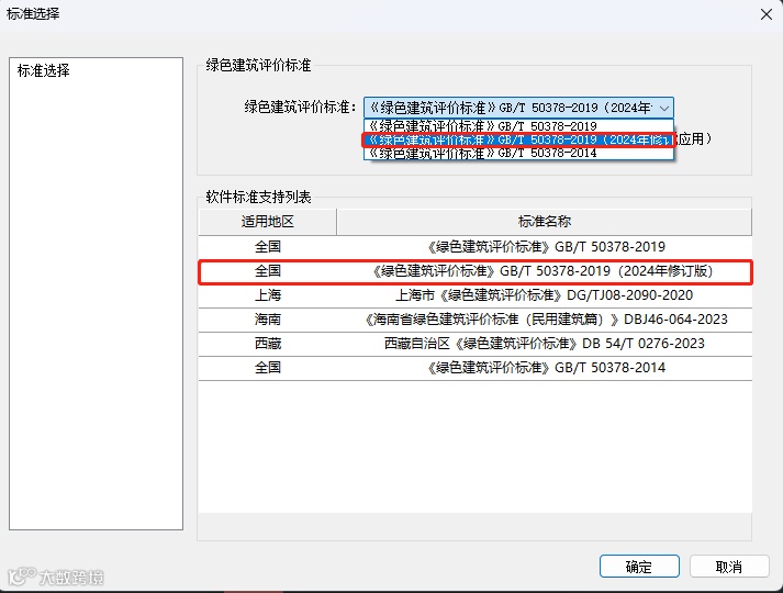 绿建修订标准选择界面