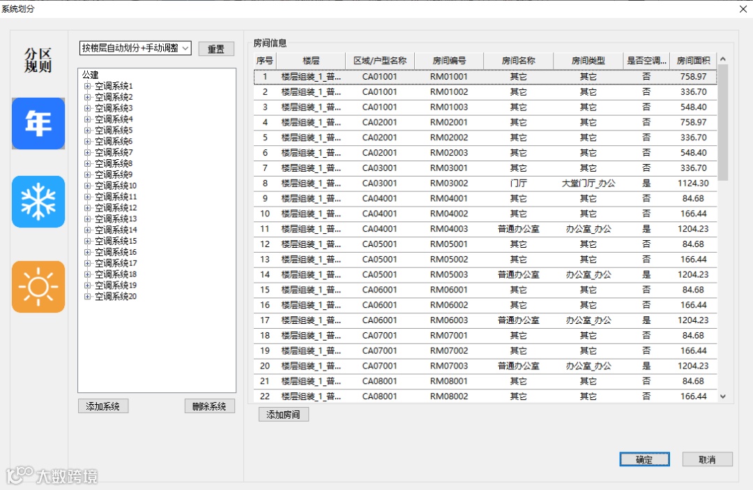 空调系统划分界面