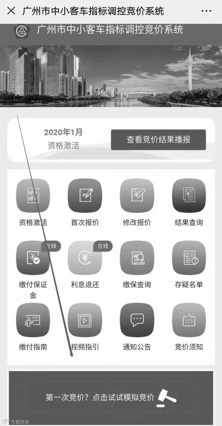 竞买人可登录广州市中小客车指标调控竞价系统,进行模拟竞价,熟悉竞价操作。模拟竞价过程中的报价数据不做任何保存。