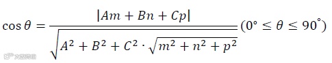 反射光入射角(也称“眩光角”)是指经玻璃幕墙反射后的太阳光线(简称“反射光”)与人眼水平视线(受照立面法线)的夹角。反射光入射角的确定有两种途径:一是可以通过预测得到的空间透视图直接量取;二是可以采用公式计算,反射光平行直线的方向向量为 L=(m,n, p), 受照立面的法线向量为 N=(A, B, C), 则反射光入射角θ计算公式为: