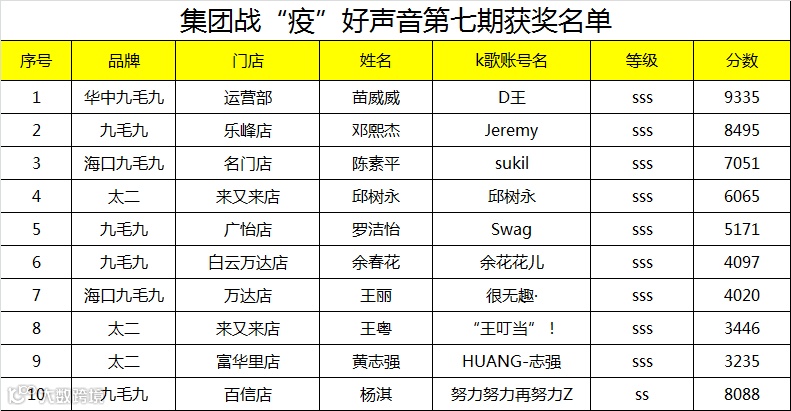 第七期战“疫”好声音前十榜单