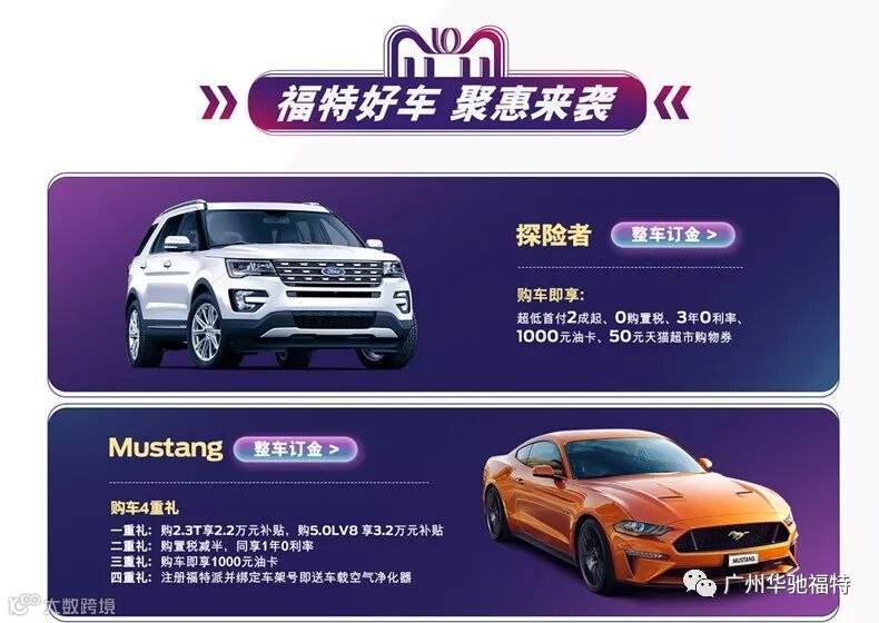 *活动车型:Mustang/探险者/长安福特全系