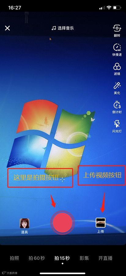 ①打开抖音,点击底下的+号键,进入拍摄模式。