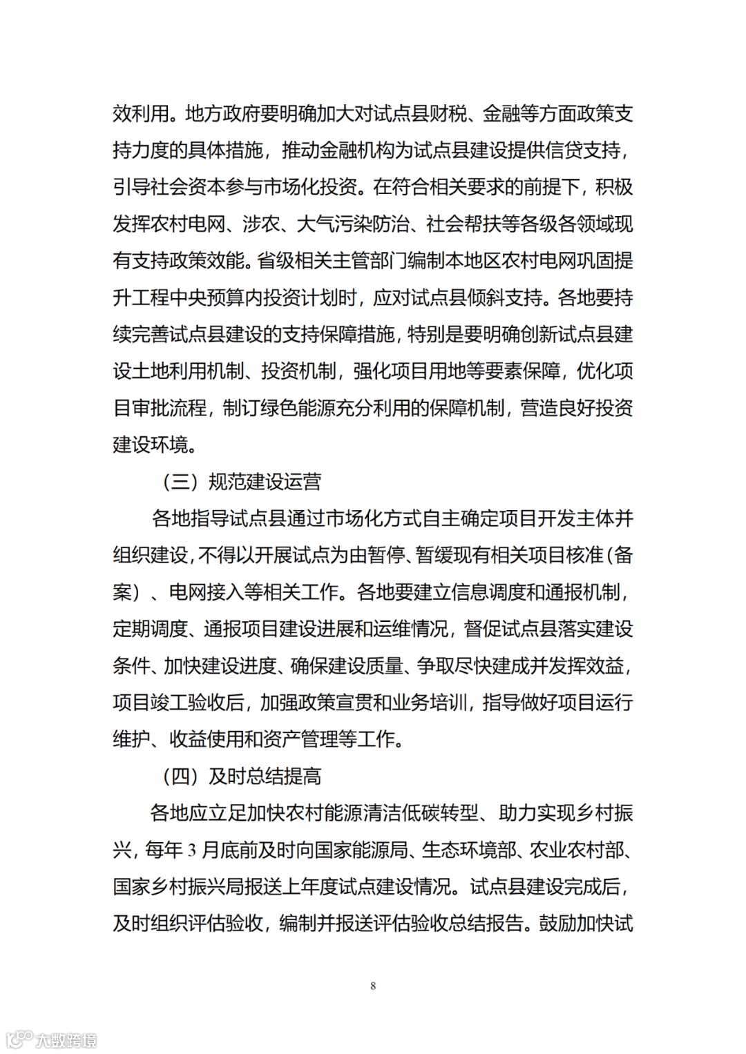 五、各地要根据实施方案,因地制宜打造深入推进农村能源革命、助力实现乡村振兴的示范和样板,合法合规、统筹利用好各领域支持政策,加强指导协调和监督管理,高效高质完成试点县建设目标任务。