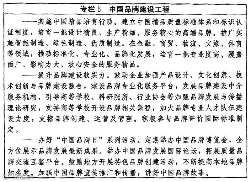 ——品牌建设取得更大进展。品牌培育、发展、壮大的促进机制和支持制度更加健全,品牌建设水平显著提高,企业争创品牌、大众信赖品牌的社会氛围更加浓厚,品质卓越、特色鲜明的品牌领军企业持续涌现,形成一大批质量过硬、优势明显的中国品牌。