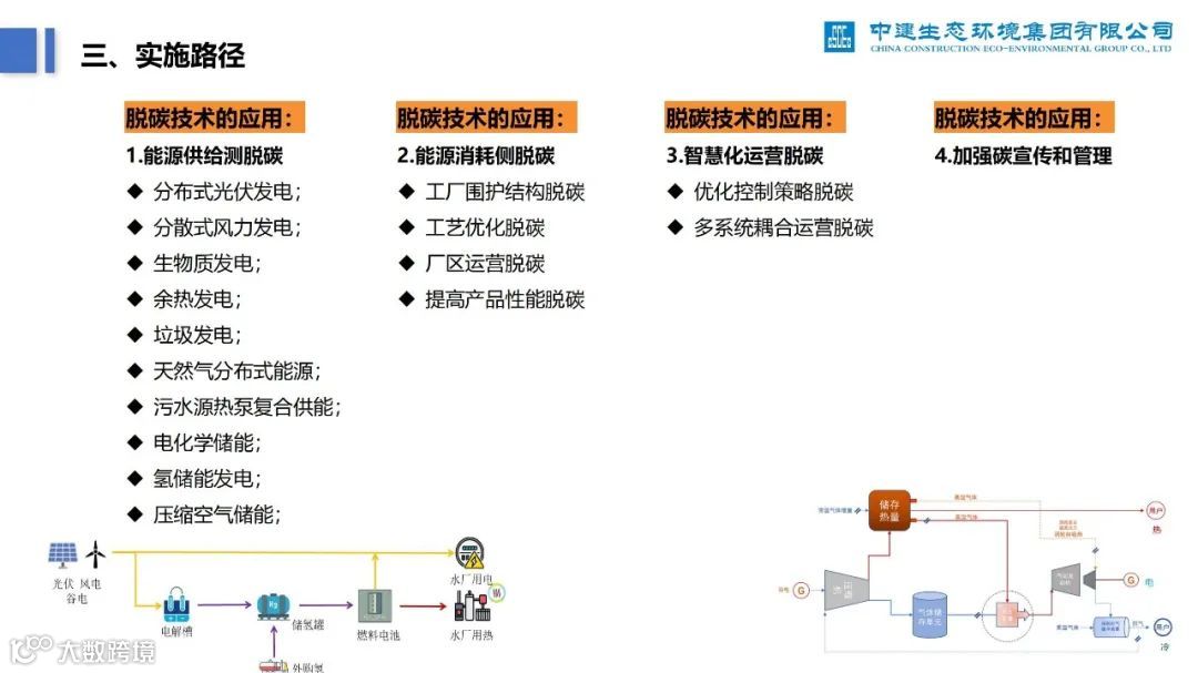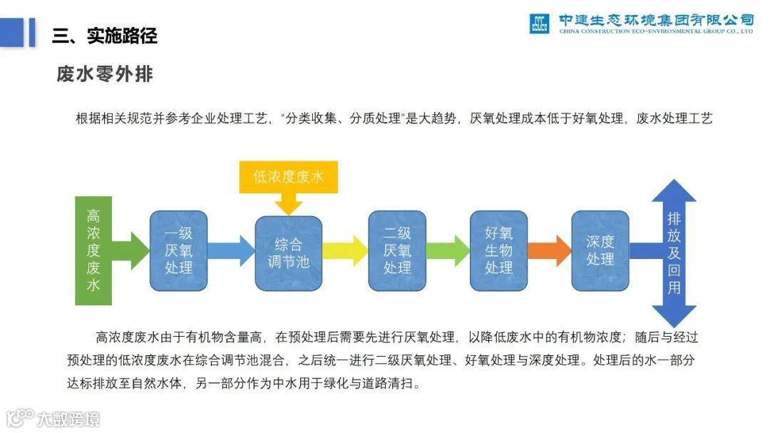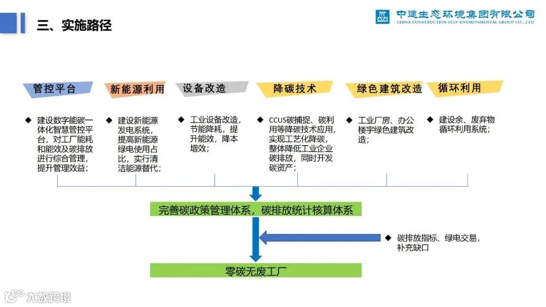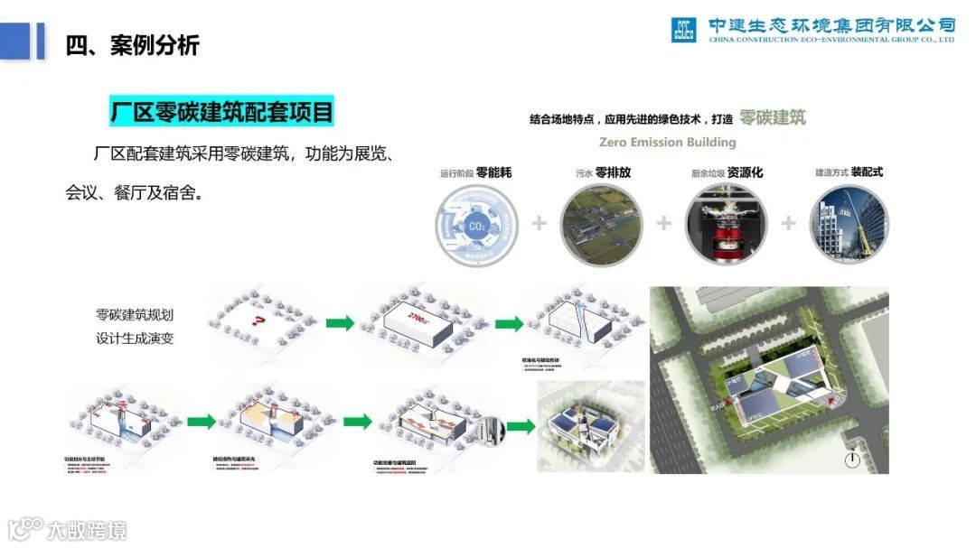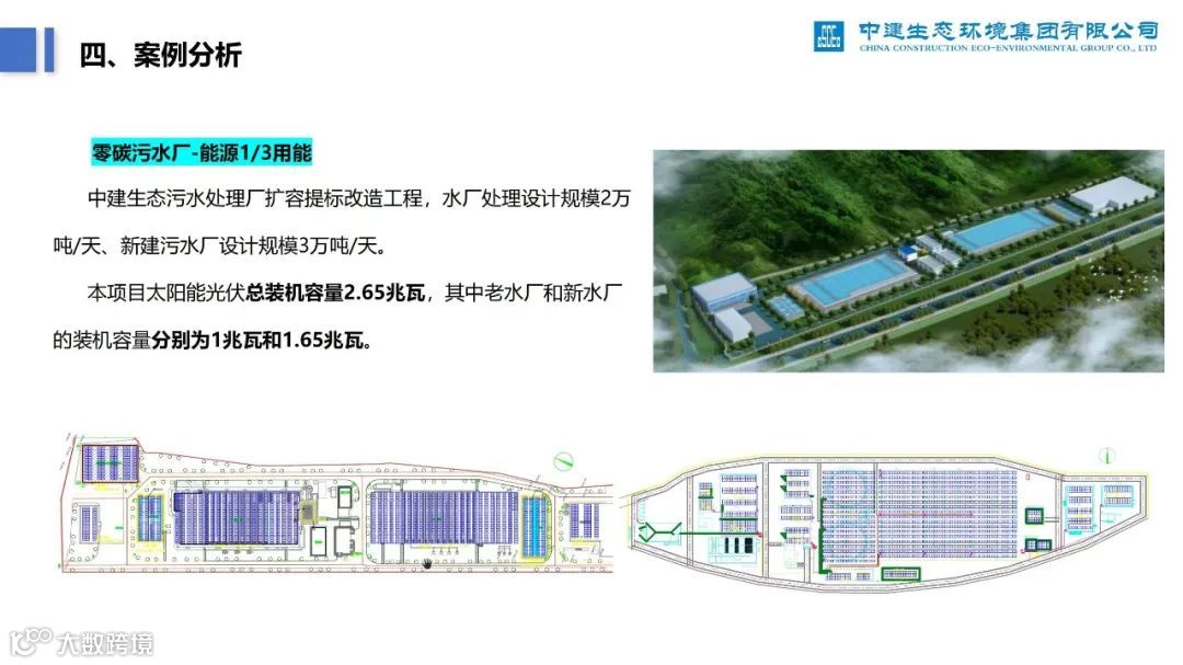 再比如,下面这份《零碳无废工厂实施路径及案例分析》PPT,深度分析了零碳工厂建设过程中的痛点、建设路径,并列举了中建生态污水处理厂的案例。