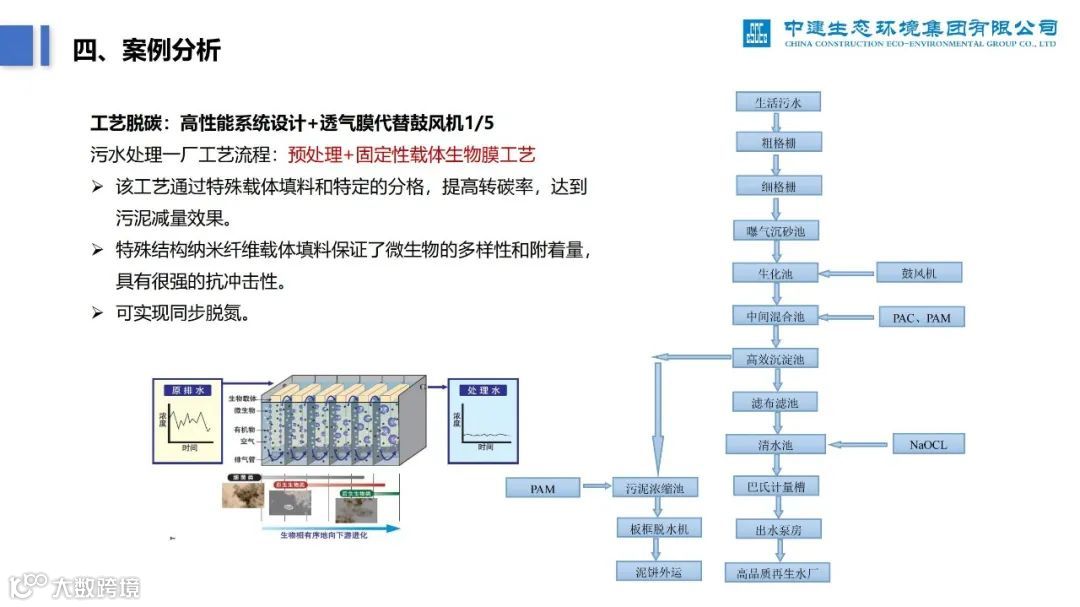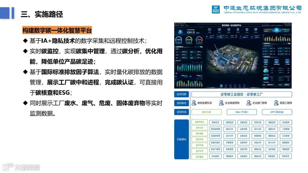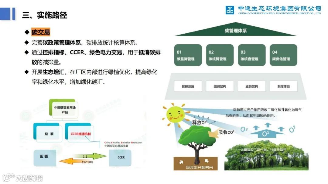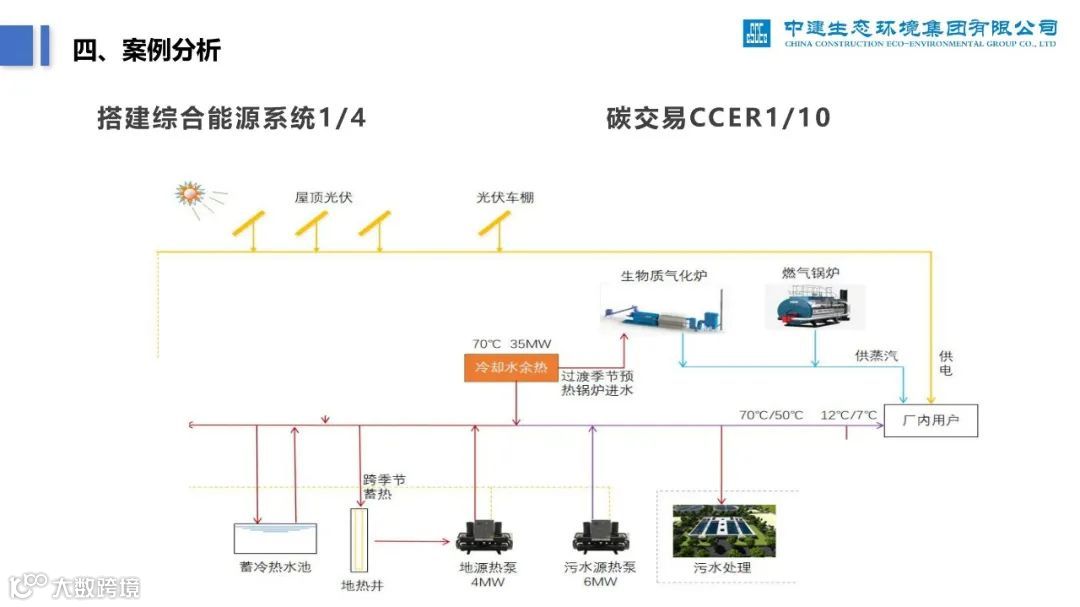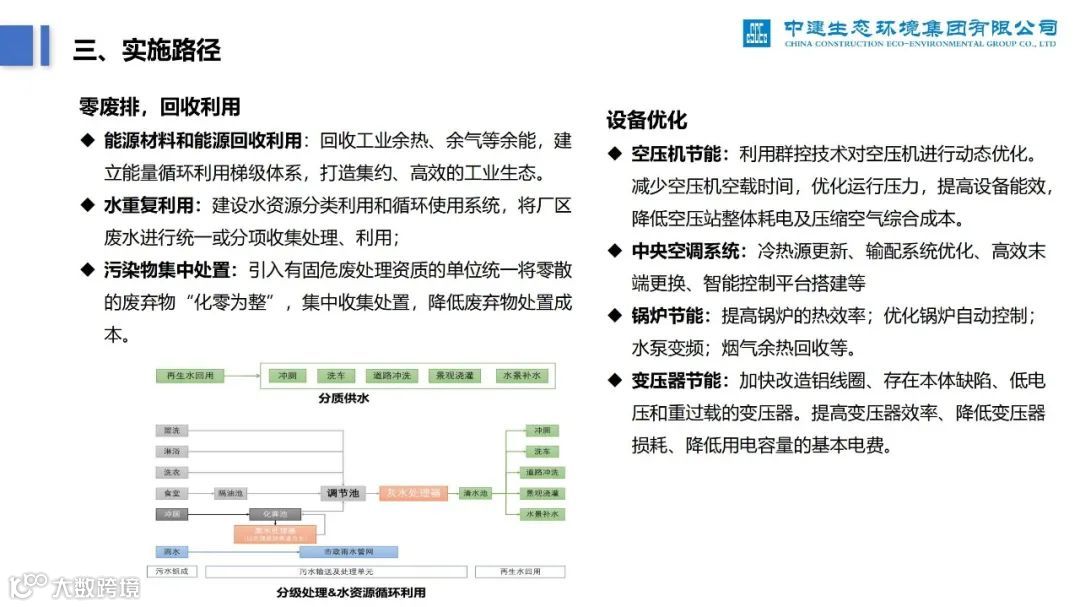 再比如,下面这份《零碳无废工厂实施路径及案例分析》PPT,深度分析了零碳工厂建设过程中的痛点、建设路径,并列举了中建生态污水处理厂的案例。