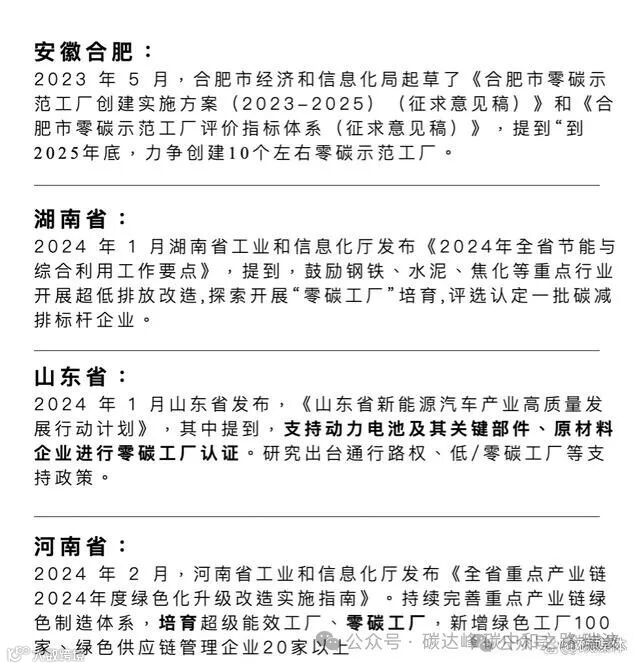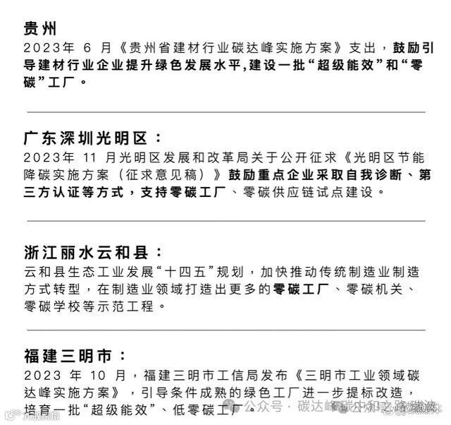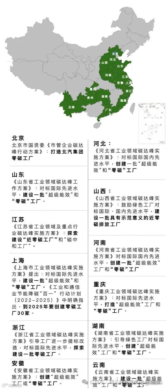 (以下为将零碳工厂列入碳达峰实施方案的省市)