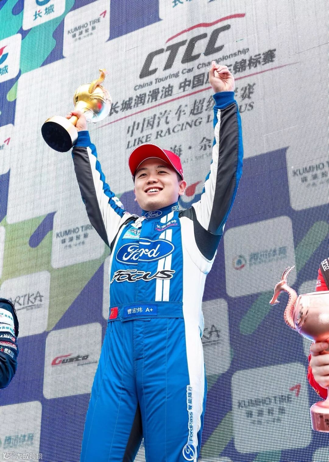 下午冲刺赛的第一圈过后,曹宏炜开始领跑比赛,队友甄卓伟紧随其后。在甄卓伟的掩护下,曹宏炜很快建立了2秒多的领先优势。显然,甄卓伟要承受着后方多台赛车的进攻,并在比赛后段与对手在连续多个弯角进行缠斗。最终,曹宏炜兵不血刃拿下了超级杯的冠军,而甄卓伟也在坚守下以第四位冲线,厂商杯的奖杯也揽入长安福特的怀中。
