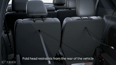 在通过PowerFold第三排电动折叠功能收起第三排座椅之前,你先要将其头枕收进座椅内。想要做到这一步很容易,拉动椅背后方的拉环就可轻松完成。