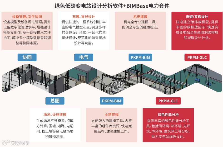 绿色低碳变电站设计分析软件+BIMBase电力套件针对变电站提供各专业设计和分析工具,包含协同、总图、电气、土建、机电、绿色化性能分析、零碳/低碳设计,助力电力行业在变电工程数字化建模、绿色低碳化设计等方面提质增效。