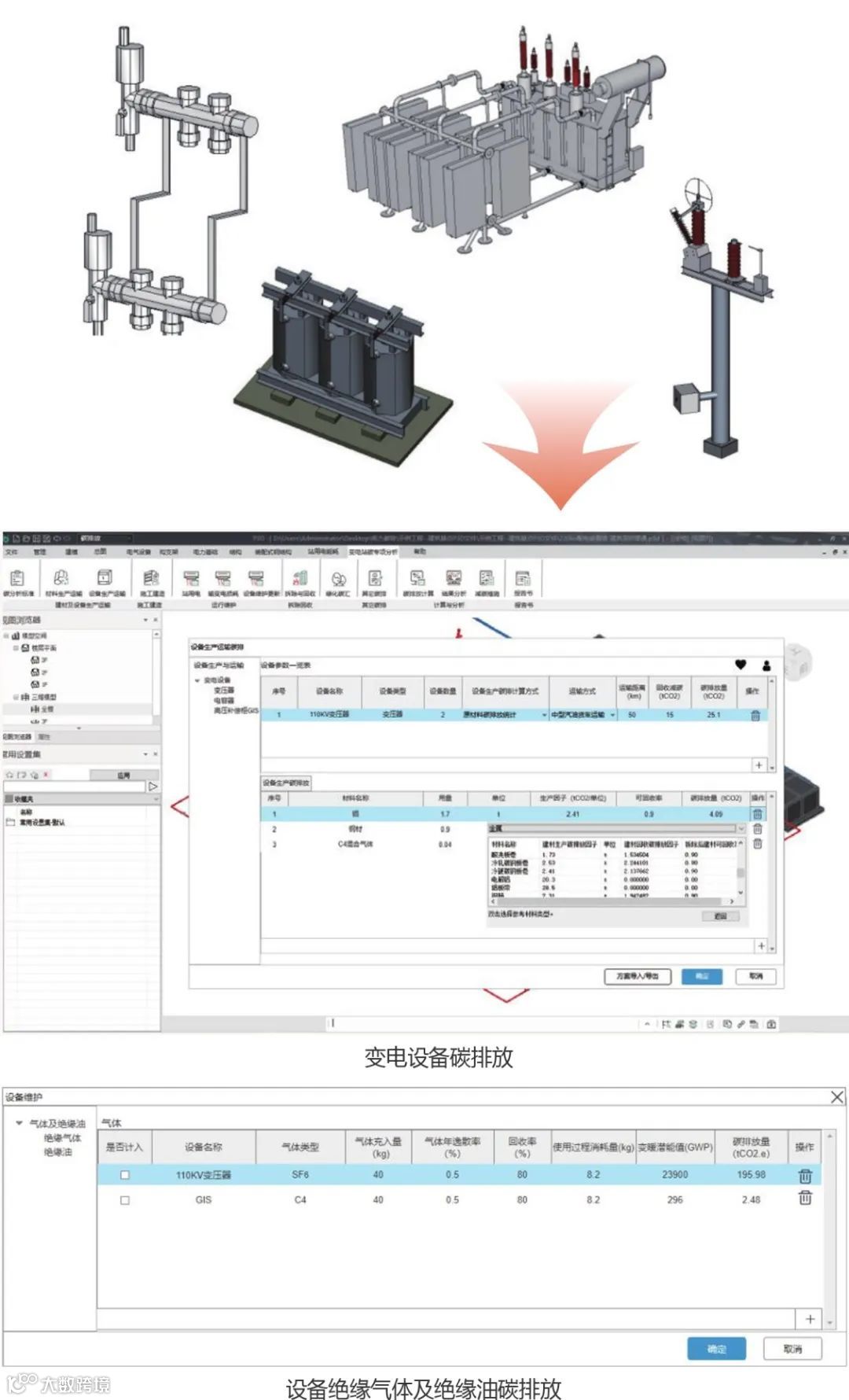 软件支持变电站全生命周期过程各类碳排放模型和碳排放因子,全面涵盖土建碳排放、一次变电工艺碳排放、二次变电工艺碳排放、厂用电相关碳排放、碳汇和可再生能源减碳、材料回收减碳措施等。