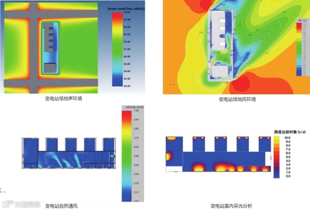 软件提供变电站场地内建筑节能设计、绿色性能分析(如声环境设计、通风设计、光环境设计等)。