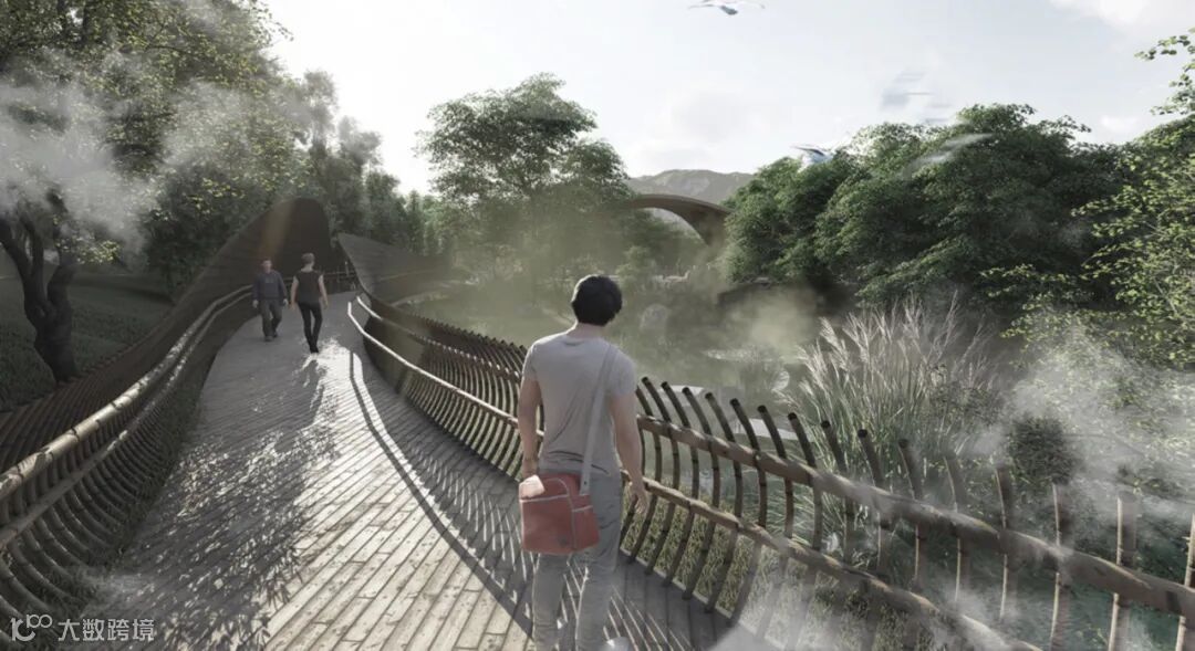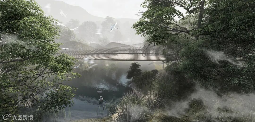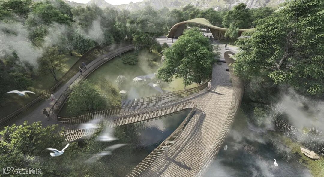 场地依山势有明显的坡度,植被丰茂。考虑场地的植物,动物,水系,地形等因素,选择栈桥形式能将人与自然紧密地结合起来。既能降低人对场地环境的干扰,也能让游人享受多维度的体验。