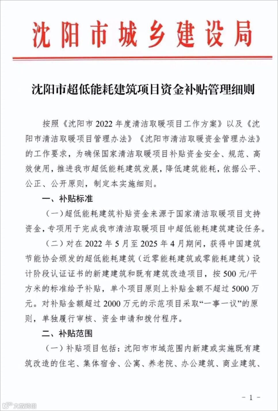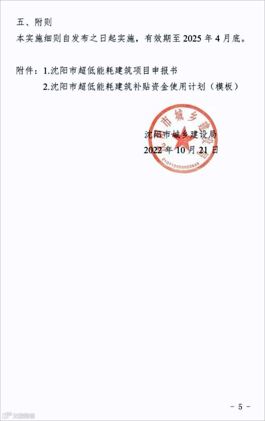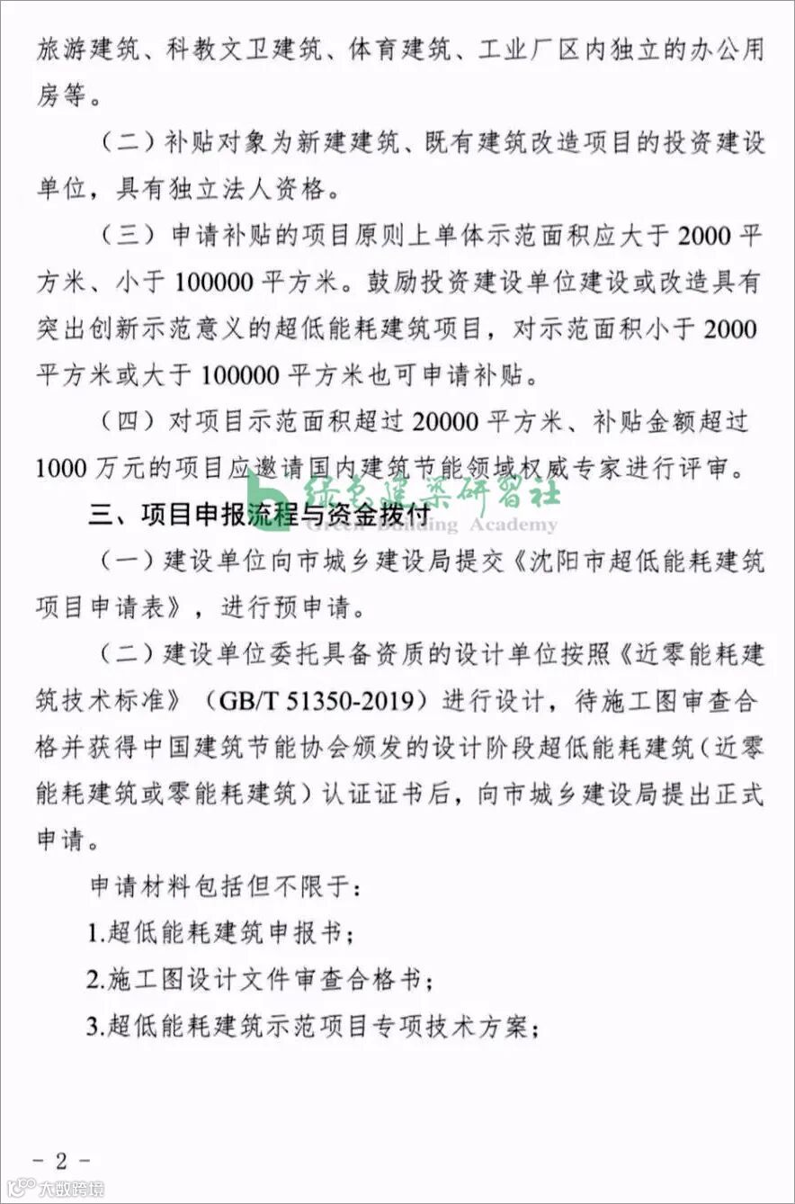导读:【沈阳】《超低能耗建筑资金补贴管理细则》发布:每平米500元,单个项目不超过5000万元