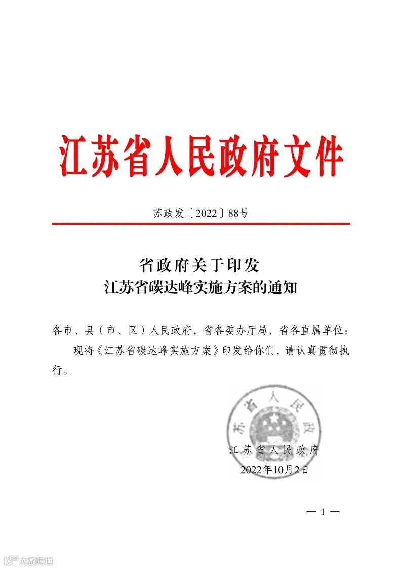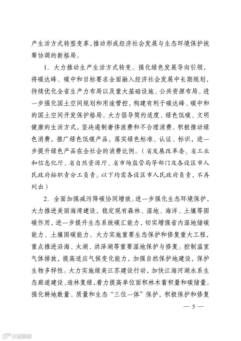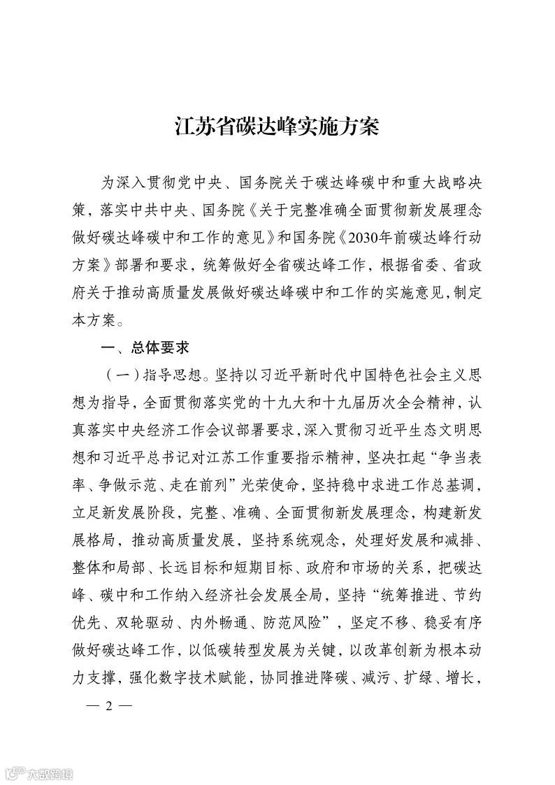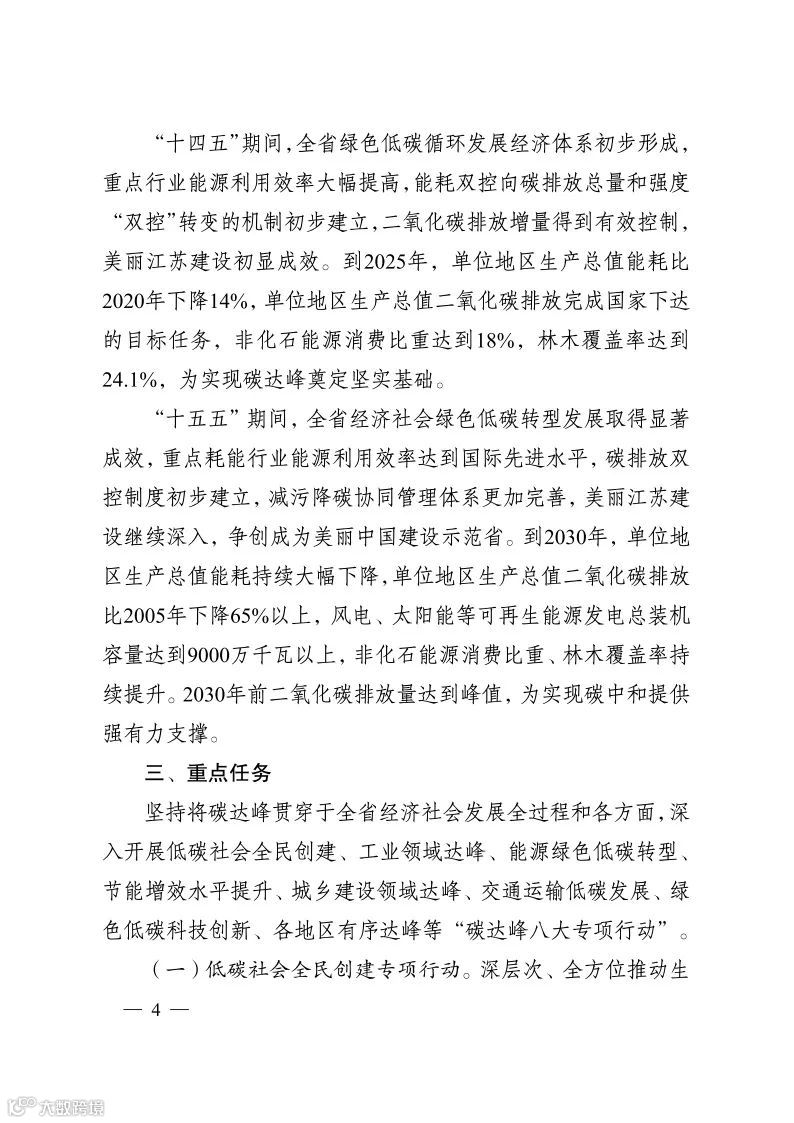 日前,《江苏省碳达峰实施方案》印发,方案指出: