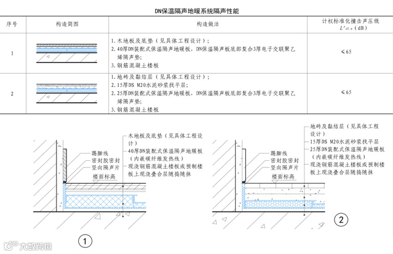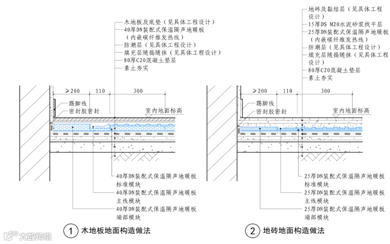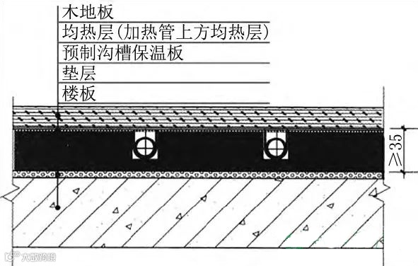 从节能角度,采用可以间歇运行的空调系统仍然应该是推荐的方向。针对地板供暖的应用,采用干法地板供暖施工工艺成为推荐的方向★★★。干法地板供暖通常是指预制沟槽保温板将加热管敷设在预制沟槽保温板的 沟槽中,加热管与保温板沟槽尺寸吻合且上皮持平,不需要填充混凝土即可直接铺设面层的地面辐射供暖形式(典型构造下图)。