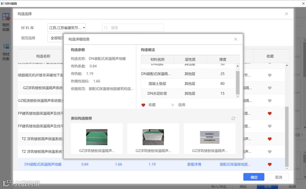 感兴趣的设计师们可直接在V4新版材料编辑ribbon搜索“DN装配式保温隔声地暖”,了解更多节点做法、技术指标以及项目案例等。